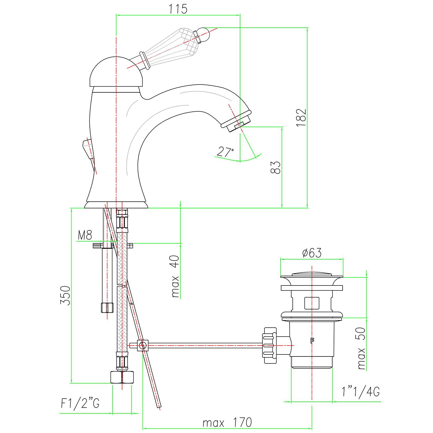 Kifolyócső magassága83 mm
