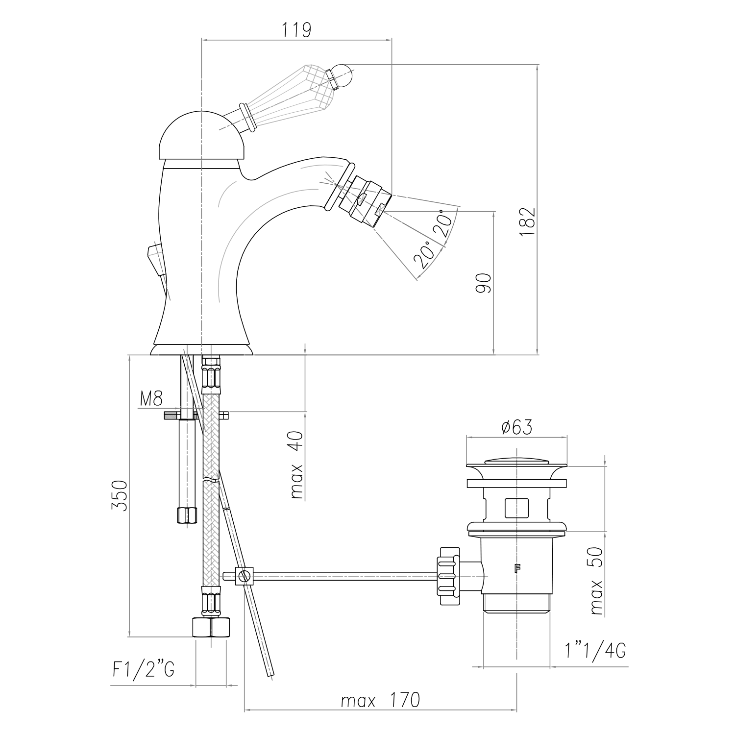 9606 Bidé szifon, réz/bronz