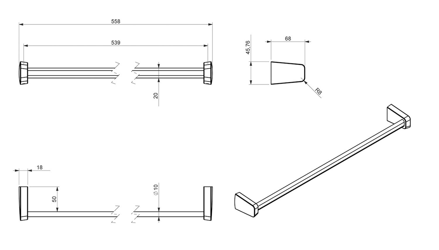 Méret558x46x68 mm