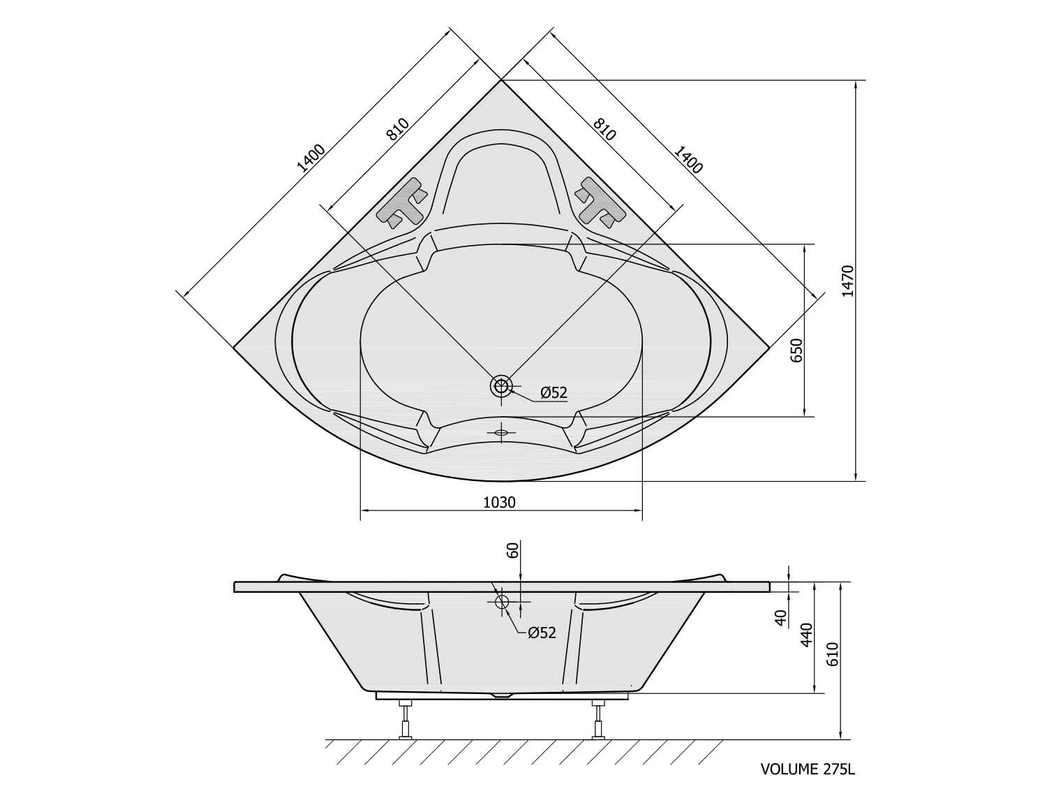 FR141141 POLYSAN lábszerkezet sarokkádhoz, 140x140cm (SIMONA)