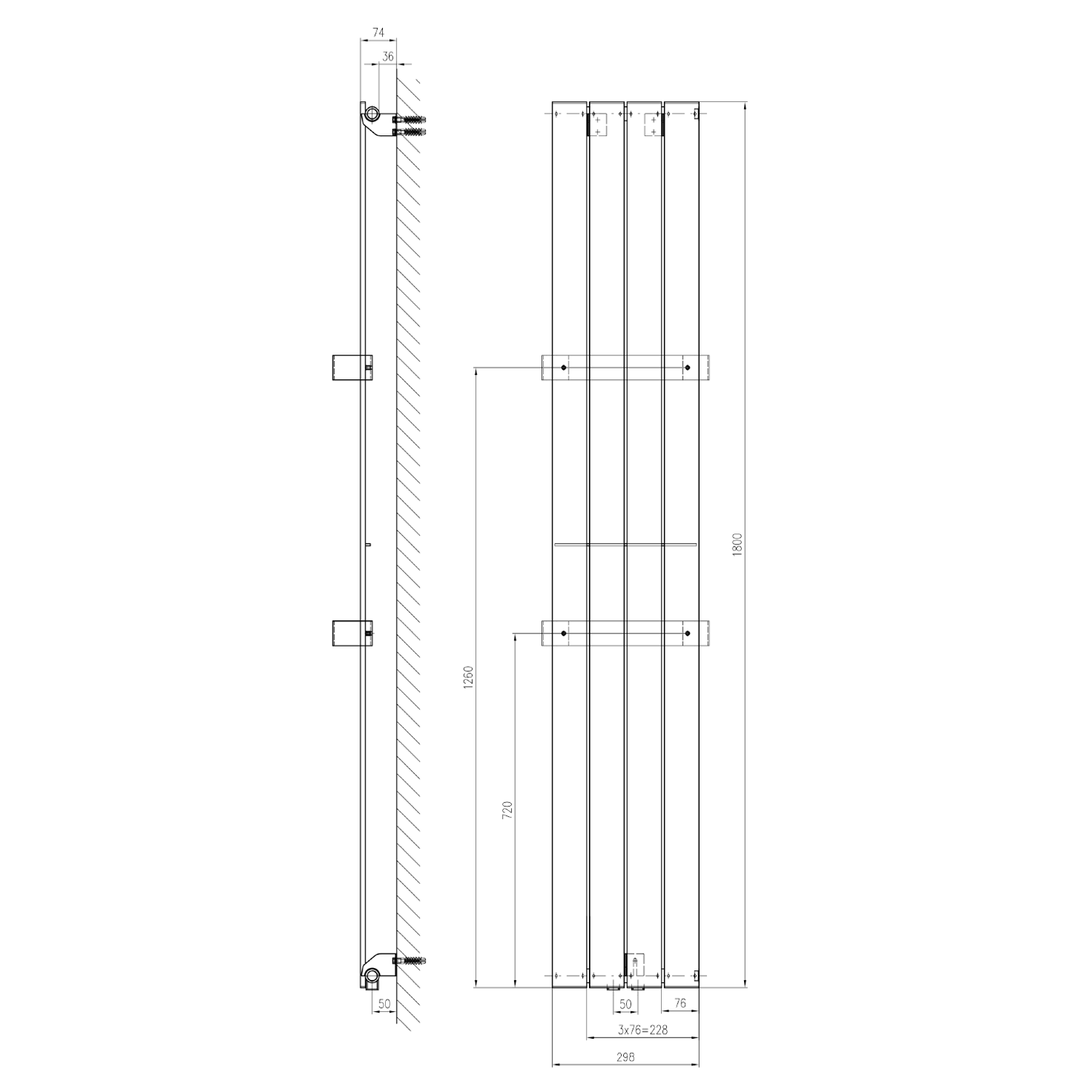 COLONNA fürdőszobai radiátor, 298x1800mm, 614W, fehér (IR140)