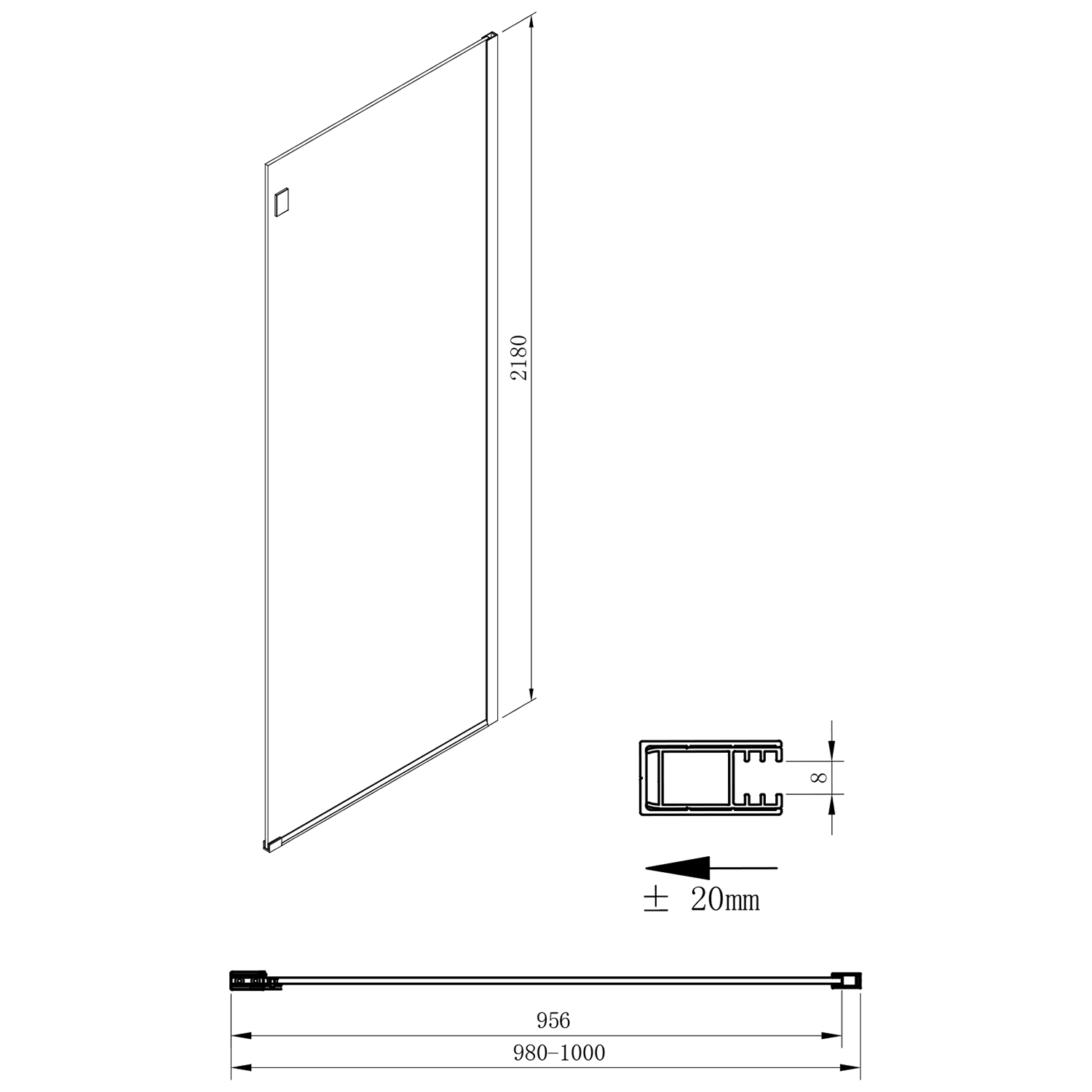 GV3410 GELCO VOLCANO oldalfal, 1000mm, transzparent üveg, matt fekete profil