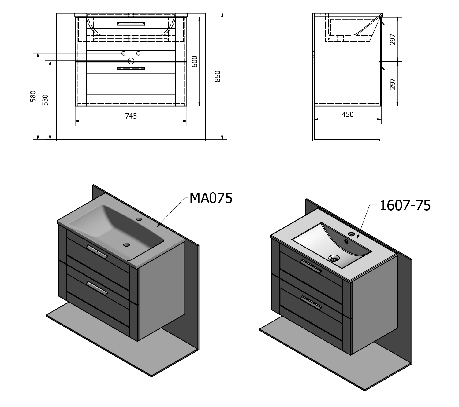 1601-75 SLIM kerámiamosdó, 76,5x47cm