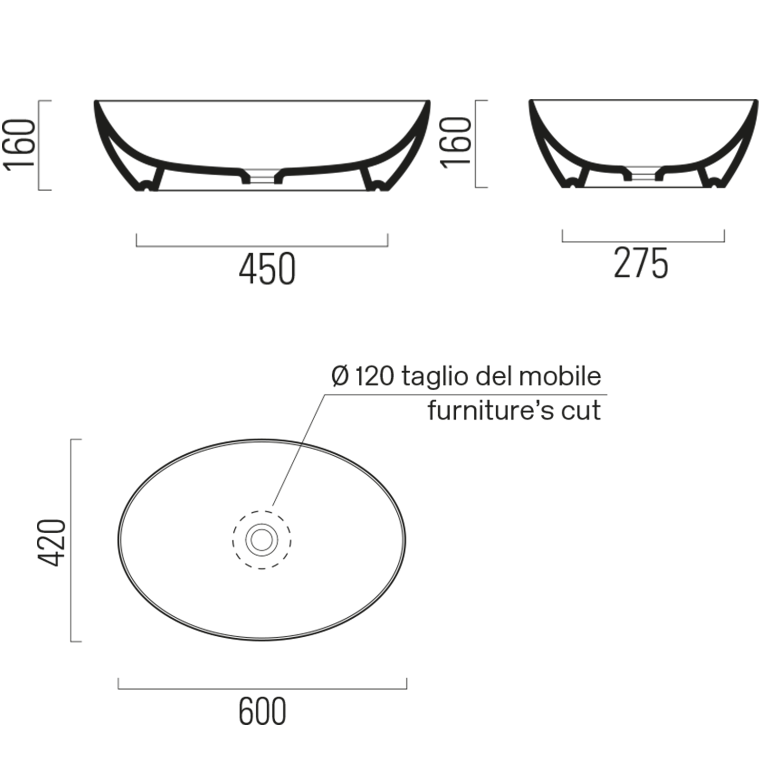 GSI PURA kerámiamosdó, pultra helyezhető, 60x16x42cm, matt fekete (884226)