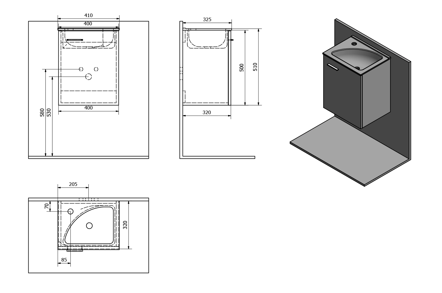 51049A-02 AQUALINE ZOJA mosdótartó szekrény mosdóval, 40x22 cm, fehér