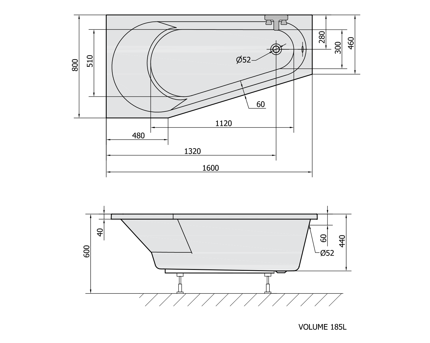 POLYSAN PROJEKTA aszimmetrikus kád, balos, 160x80x44cm (20111)