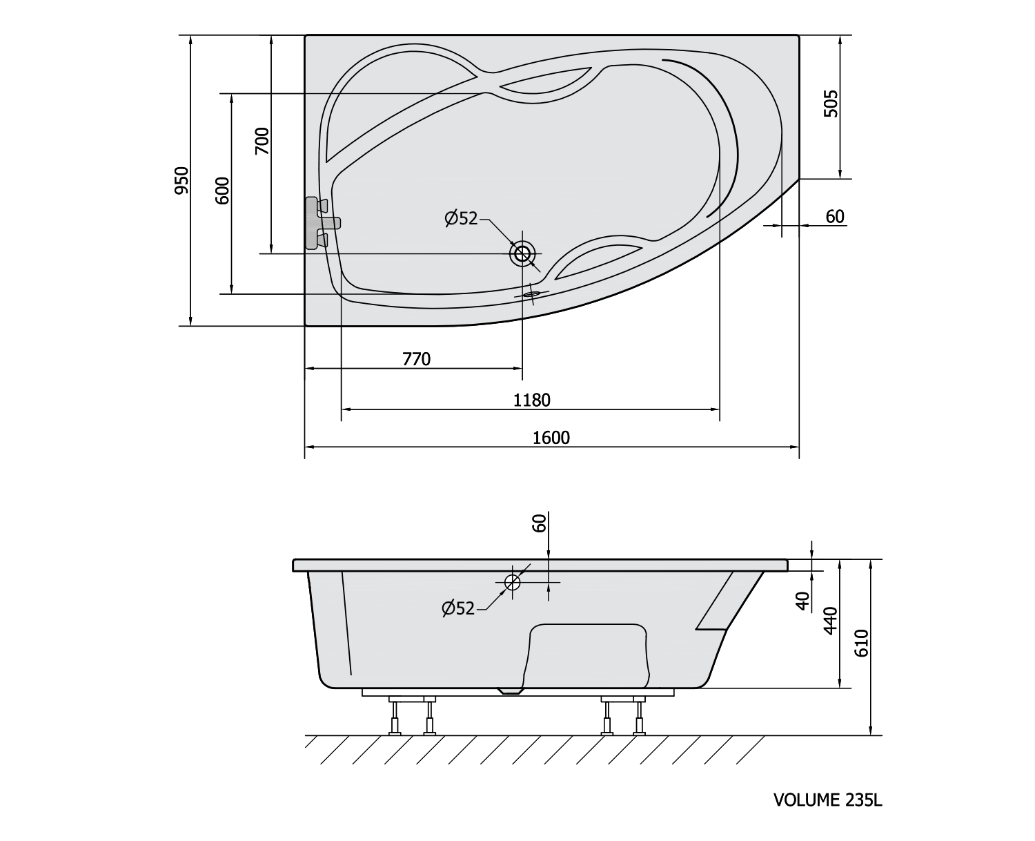 11611 POLYSAN EVIA aszimmetrikus kád, balos, 160x100x47cm