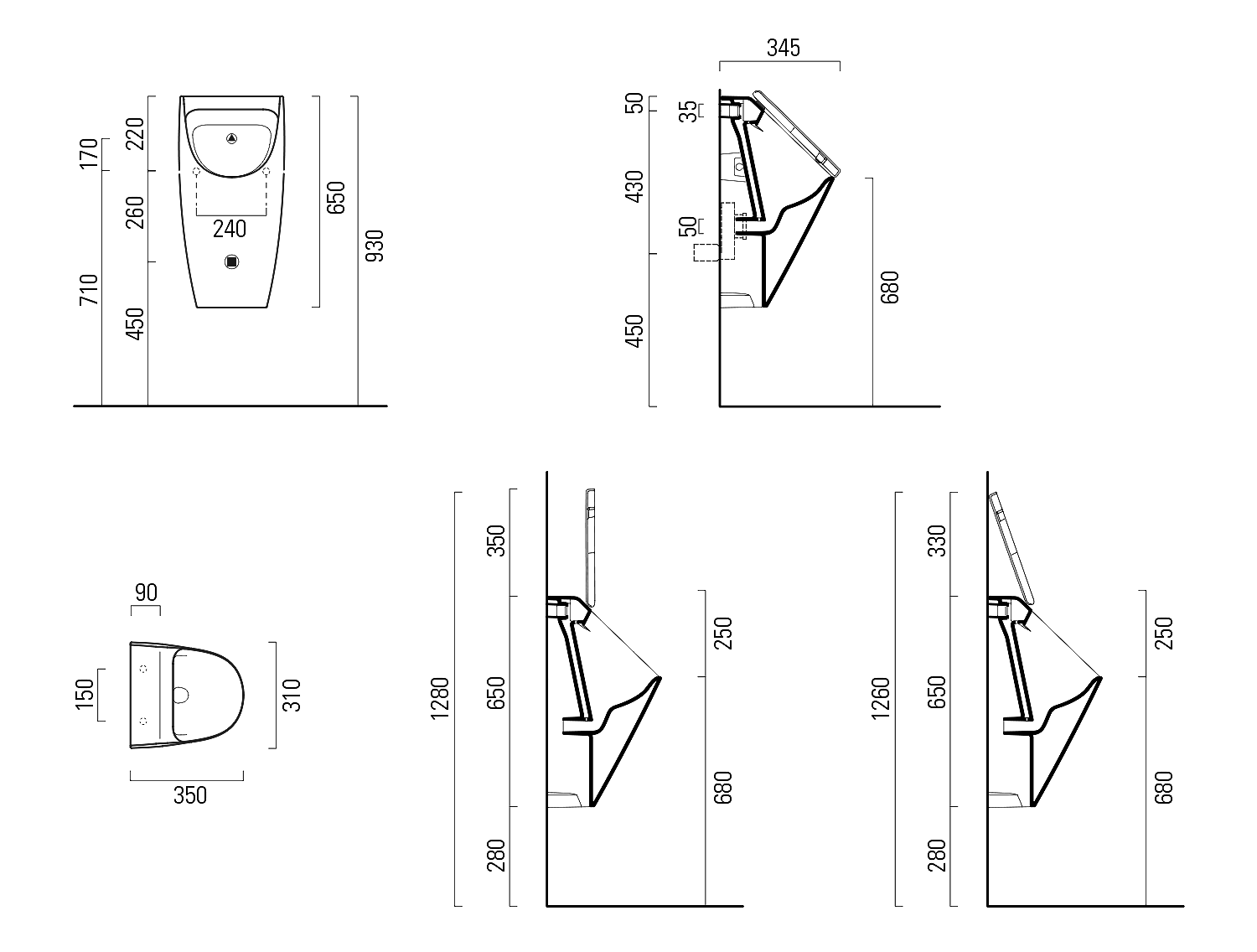 909826 GSI SAND piszoár, fedővel szerelhető, 31x65x35cm, matt fekete