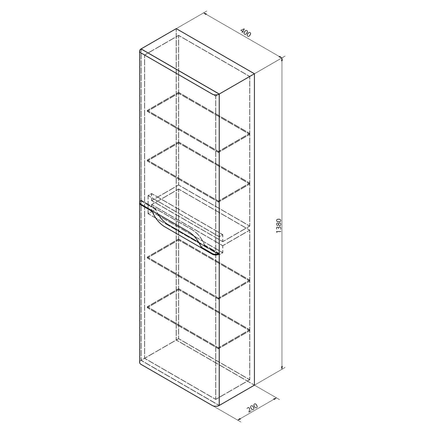 MD450 MEDIENA állószekrény 2 ajtóval, balos/jobbos, 40x140x20cm, matt fehér