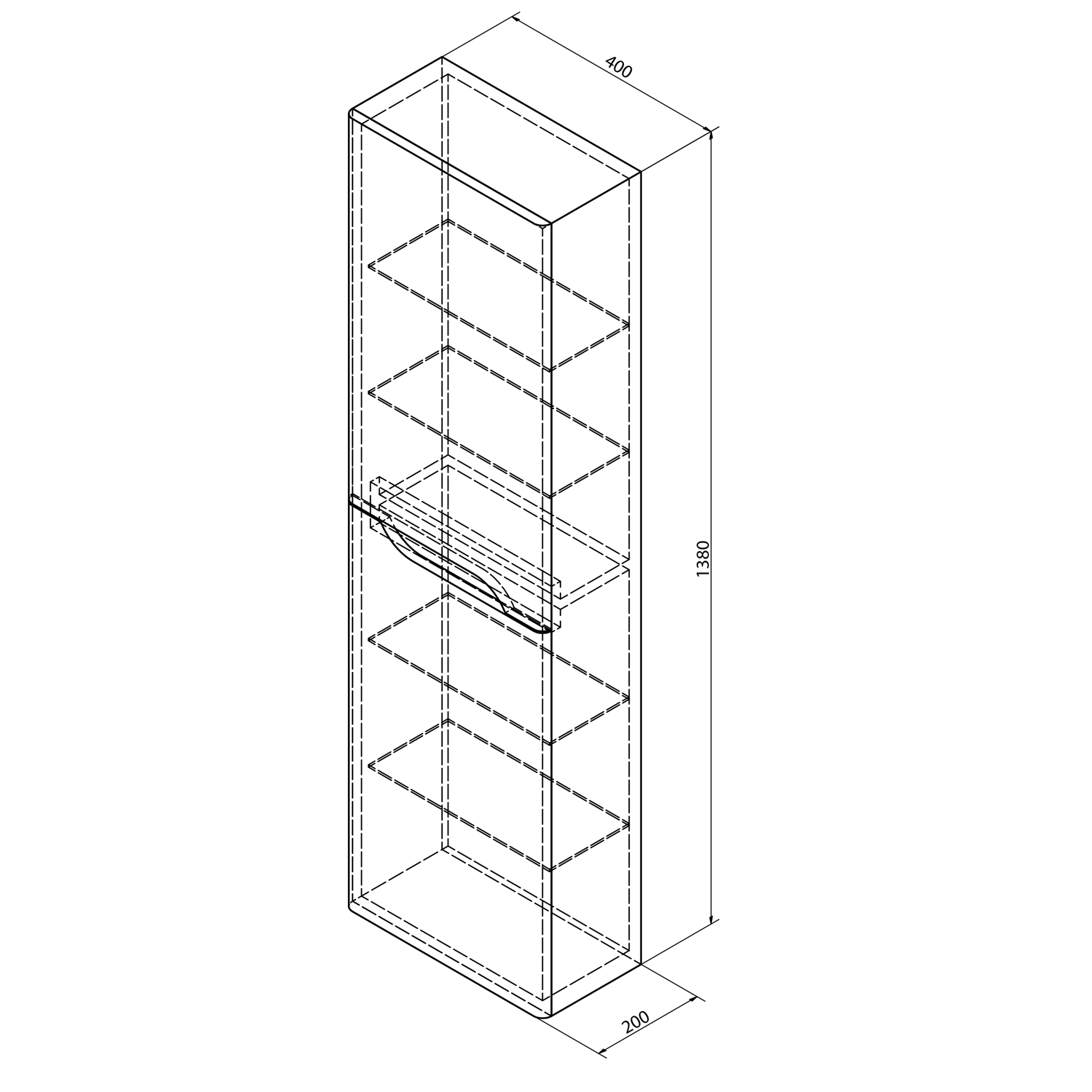 MD450 MEDIENA állószekrény 2 ajtóval, balos/jobbos, 40x140x20cm, matt fehér