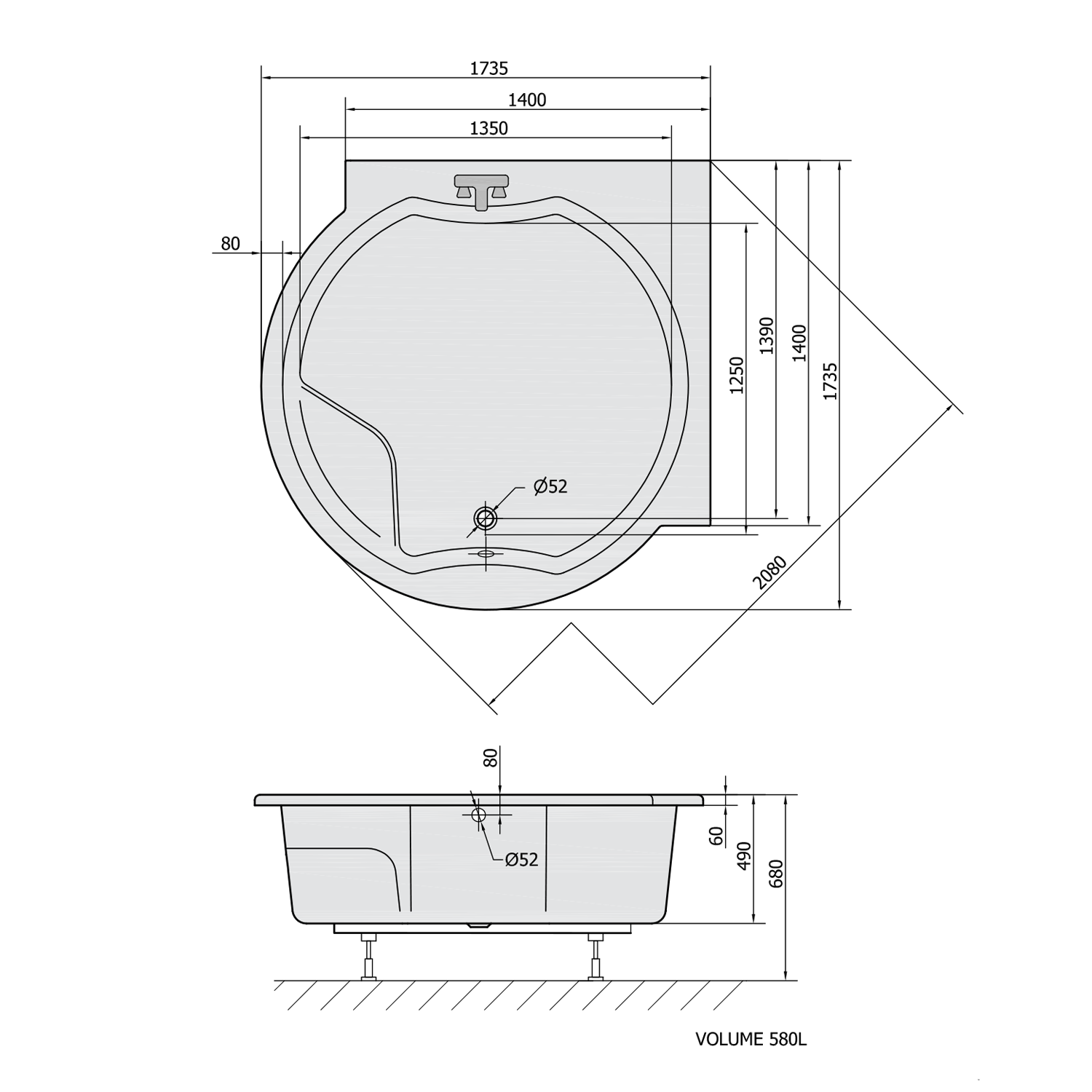 POLYSAN ROYAL sarok kád, 173x173x49cm (74211)