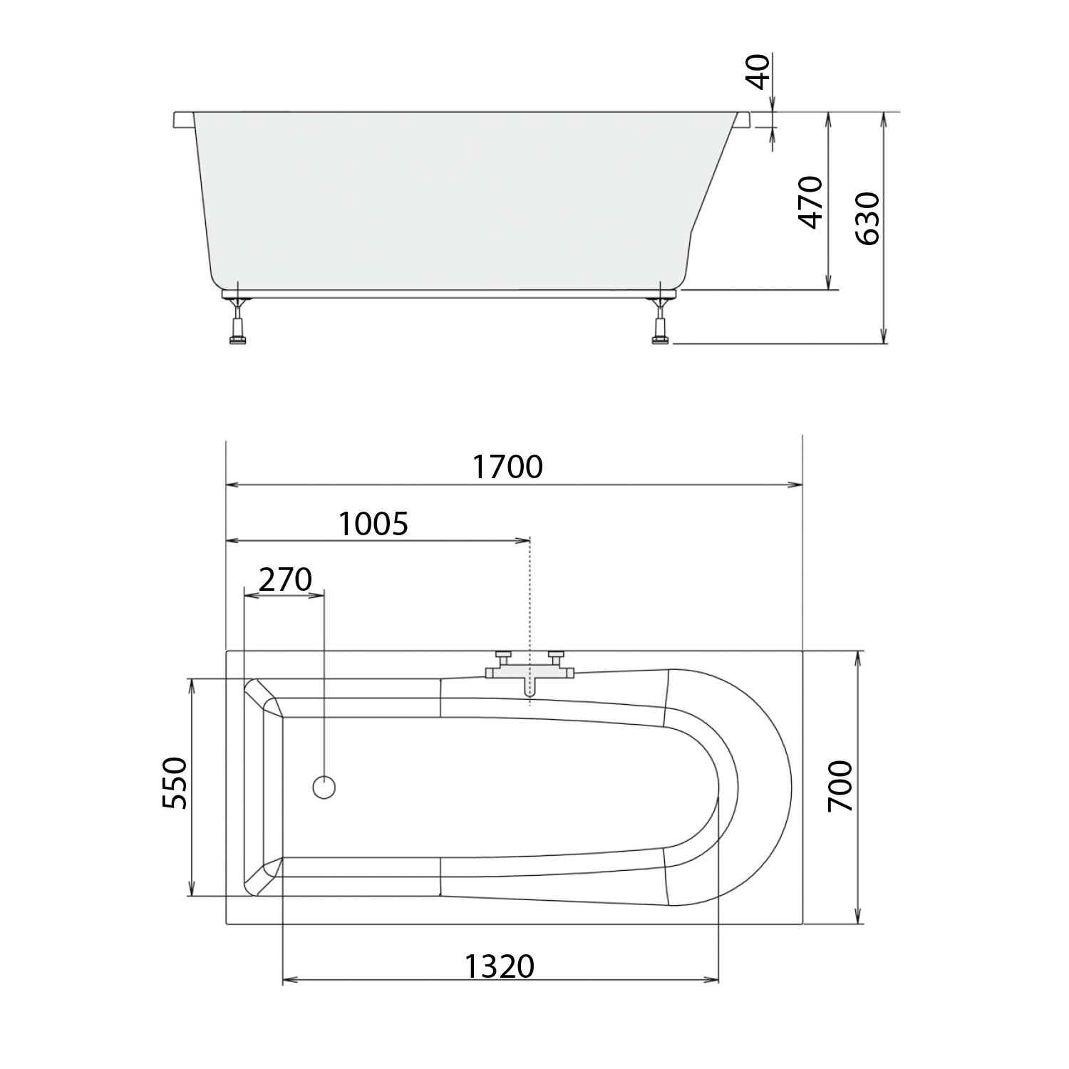 FR17071 POLYSAN lábszerkezet kádhoz, 170x70cm (LISA 170)