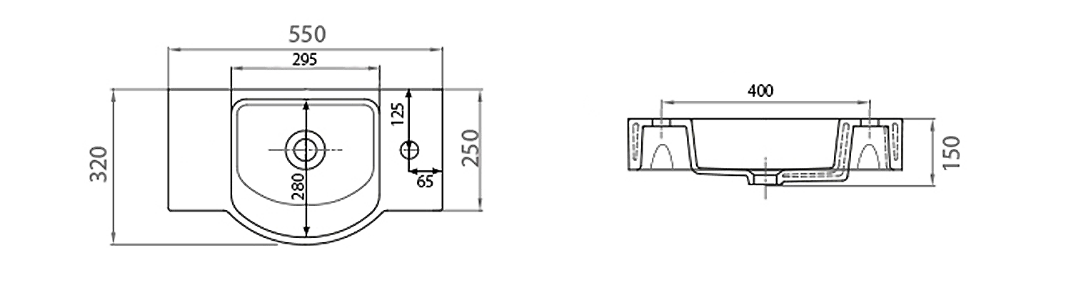 AR500 SMALL AMAROK öntöttmárvány mosdó, jobbos, 40x11x22cm