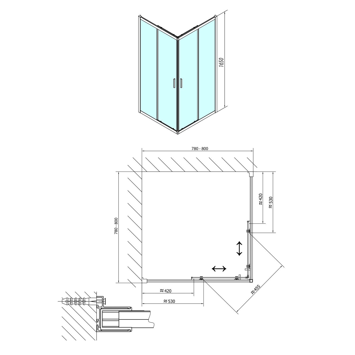 POLYSAN CARMEN szögletes zuhanyajtó, 800x800x1650mm, transzparent üveg (MD5216)