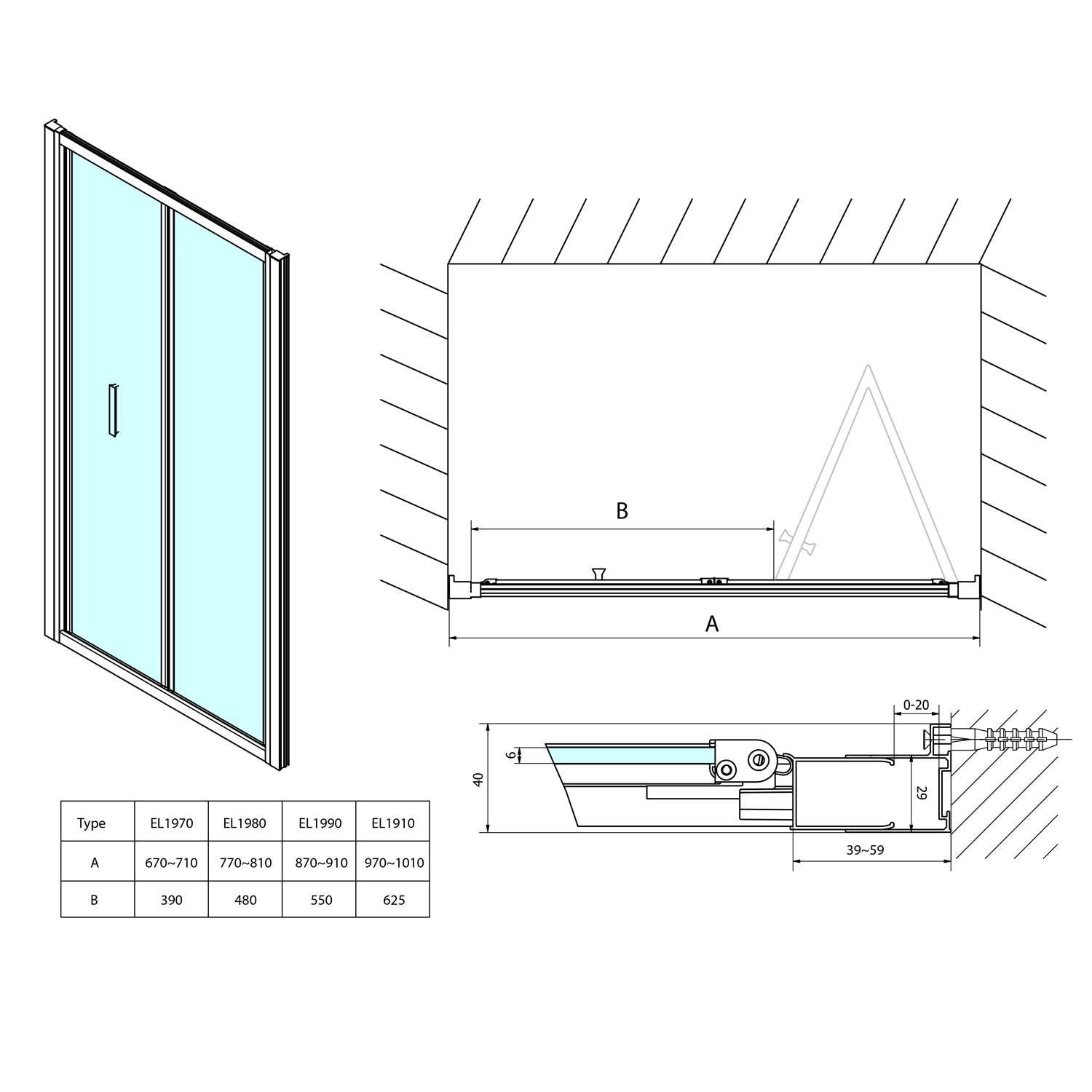 EL1738EL3238EL3238 POLYSAN EASY LINE nyílóajtó 2 oldalfallal, 2 merevítővel, jobbos/balos, 900-1000x800mm, BRICK üveg