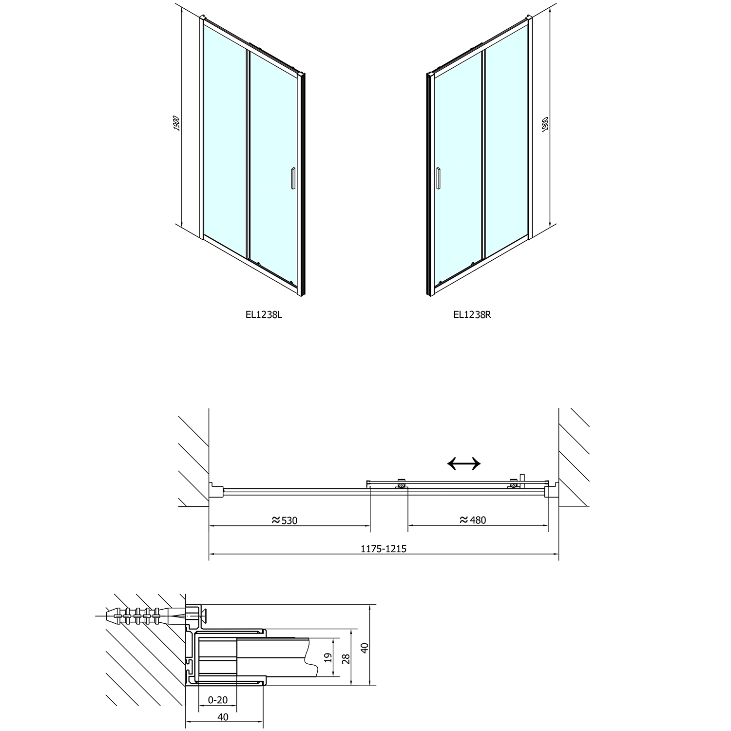 EL1738EL3438EL3438 POLYSAN EASY LINE nyílóajtó 2 oldalfallal, 2 merevítővel, jobbos/balos, 900-1000x1000mm, BRICK üveg