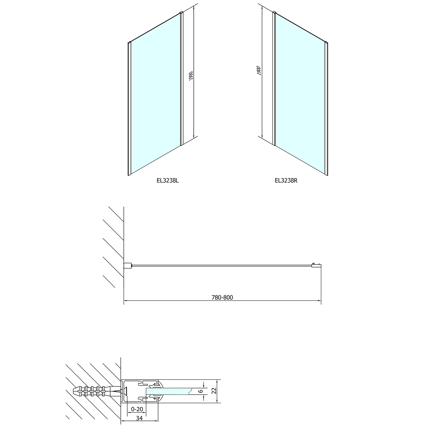 EL3238 POLYSAN EASY LINE oldalfal, 800mm, BRICK üveg