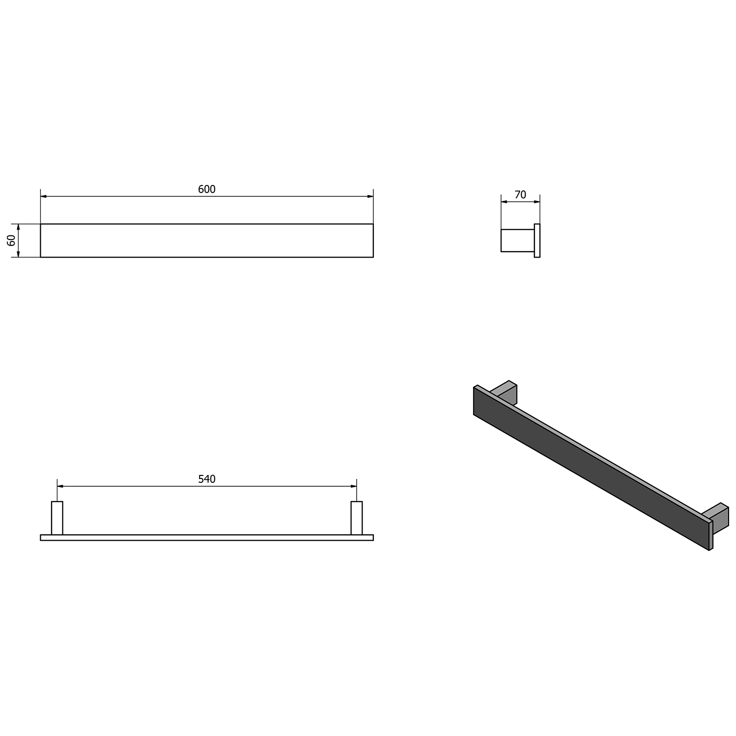 PATRON törölközőtartó, 600x60mm, fekete (PX064)