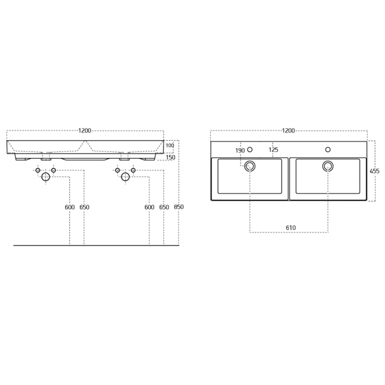 17120 KARE dupla kerámiamosdó, 120x45,5cm