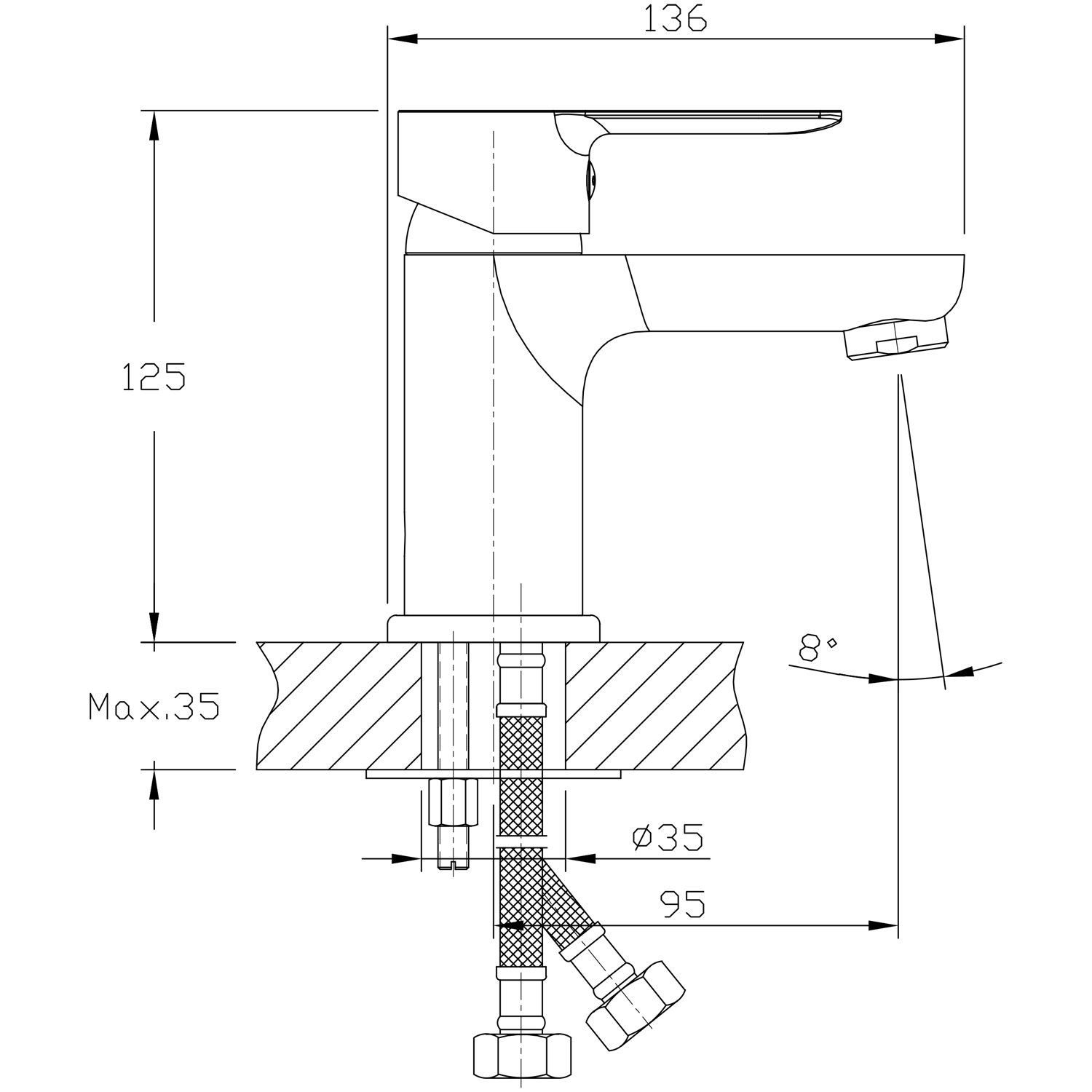 612.015.11 BRUCKNER BARON ECO fali mosdócsaptelep, 3,8 l/min, króm