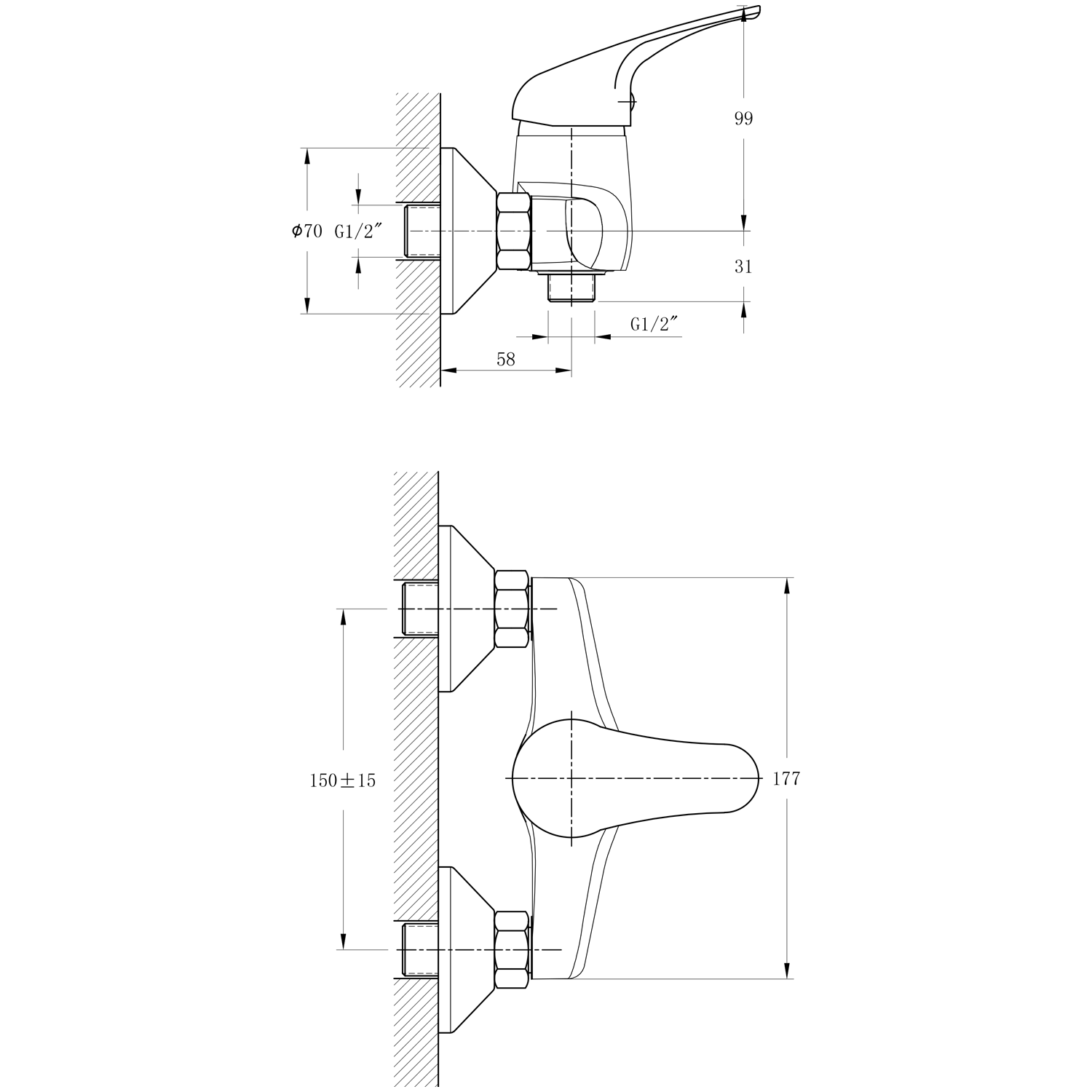 SzerelésFali 150 mm