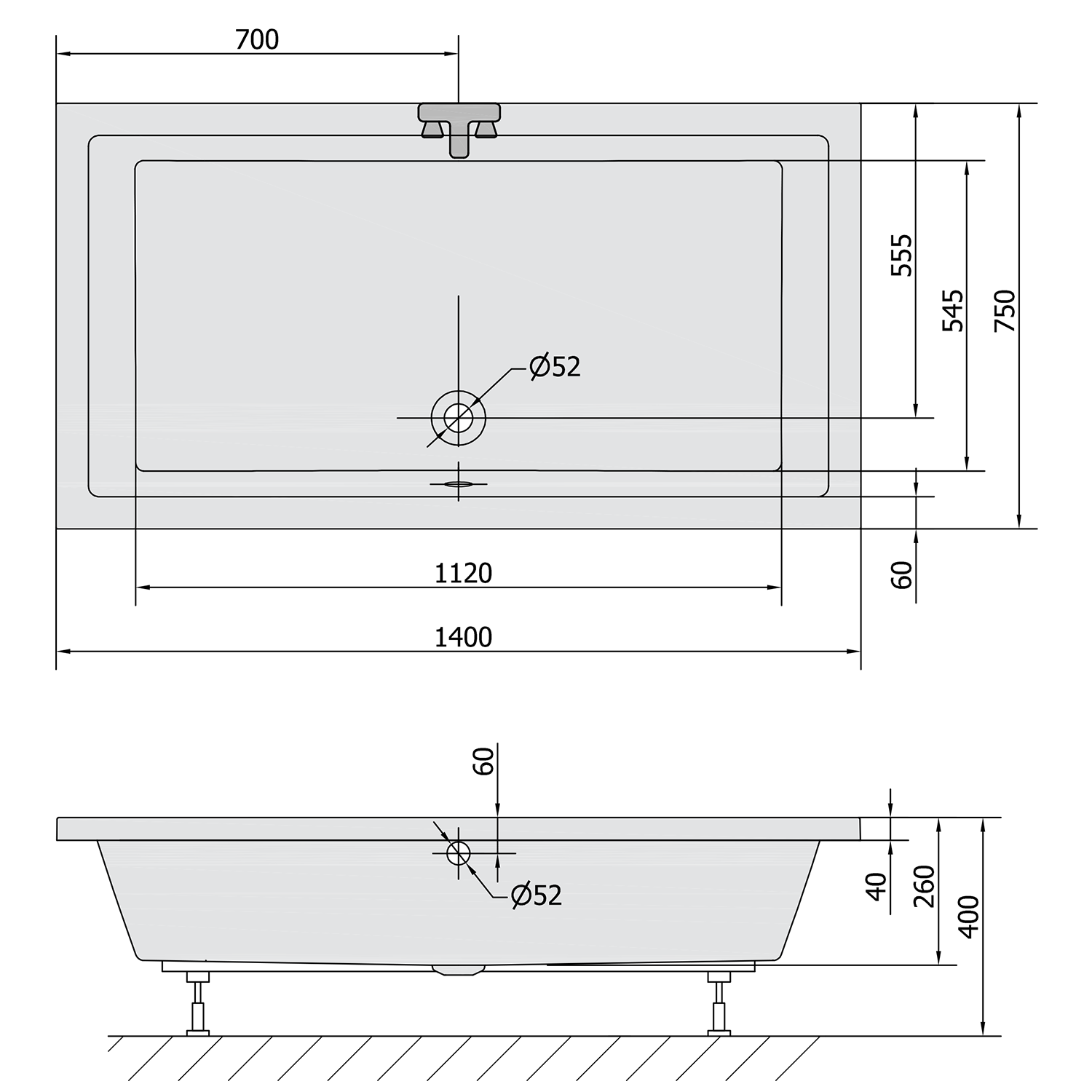 72948 POLYSAN DEEP szögletes mély zuhanytálca lábszerkezettel, 140x75x26cm