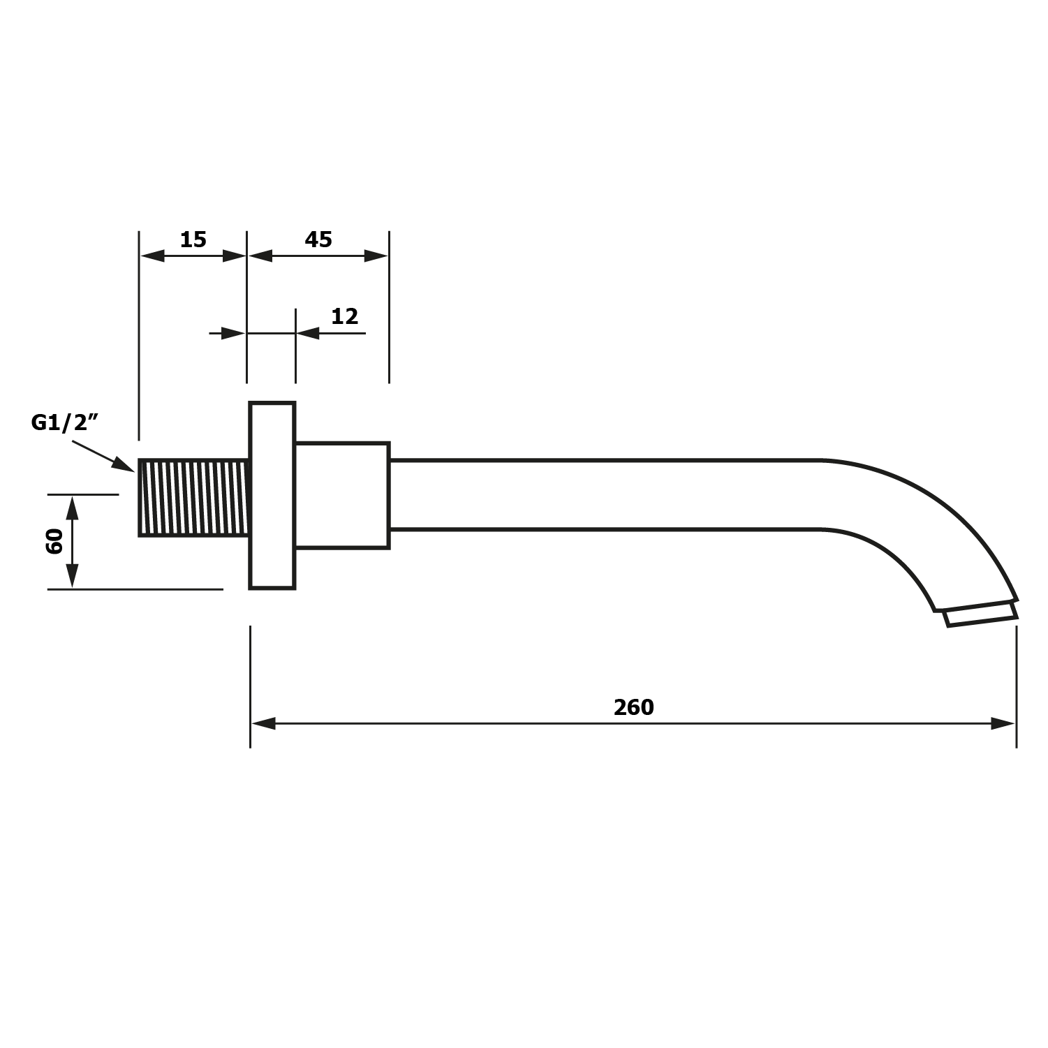 fali kádbeömlő, 260mm, króm (CR260CRO)