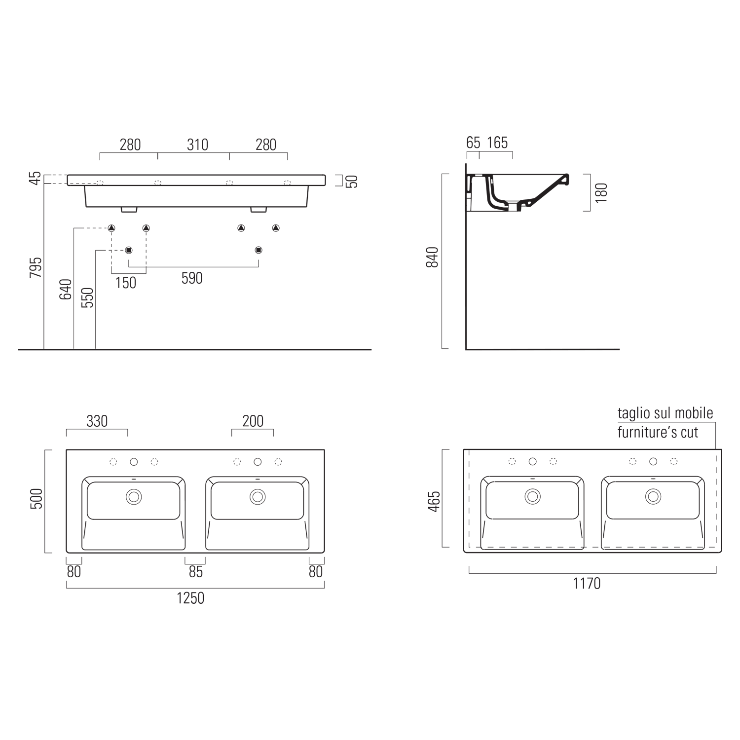 8627111 GSI NORM kerámia duplamosdó, 125x50cm, ExtraGlaze