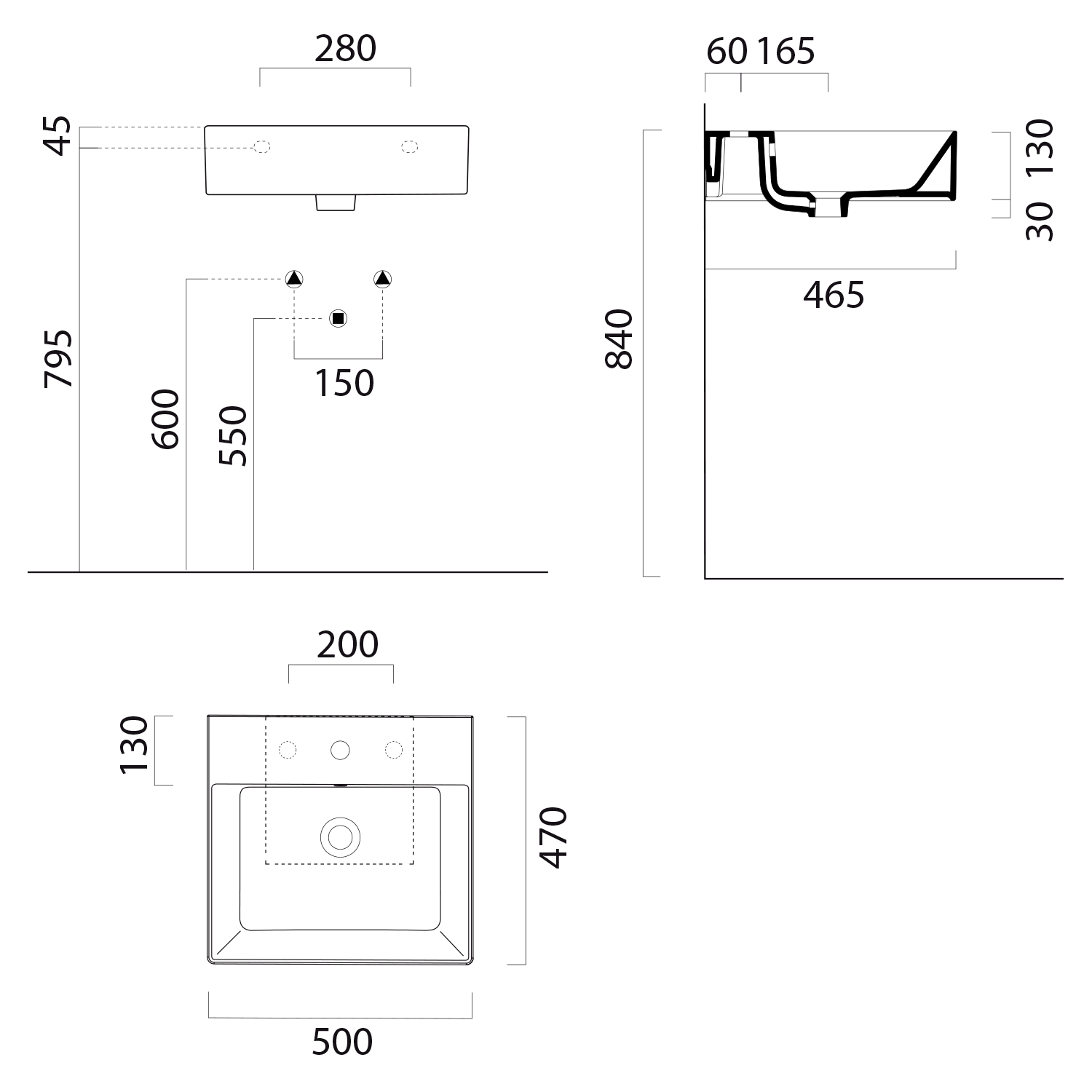 94579311 GSI KUBE X kerámiamosdó, 80x47cm, csiszolt alsó élekkel, 3 furattal, ExtraGlaze