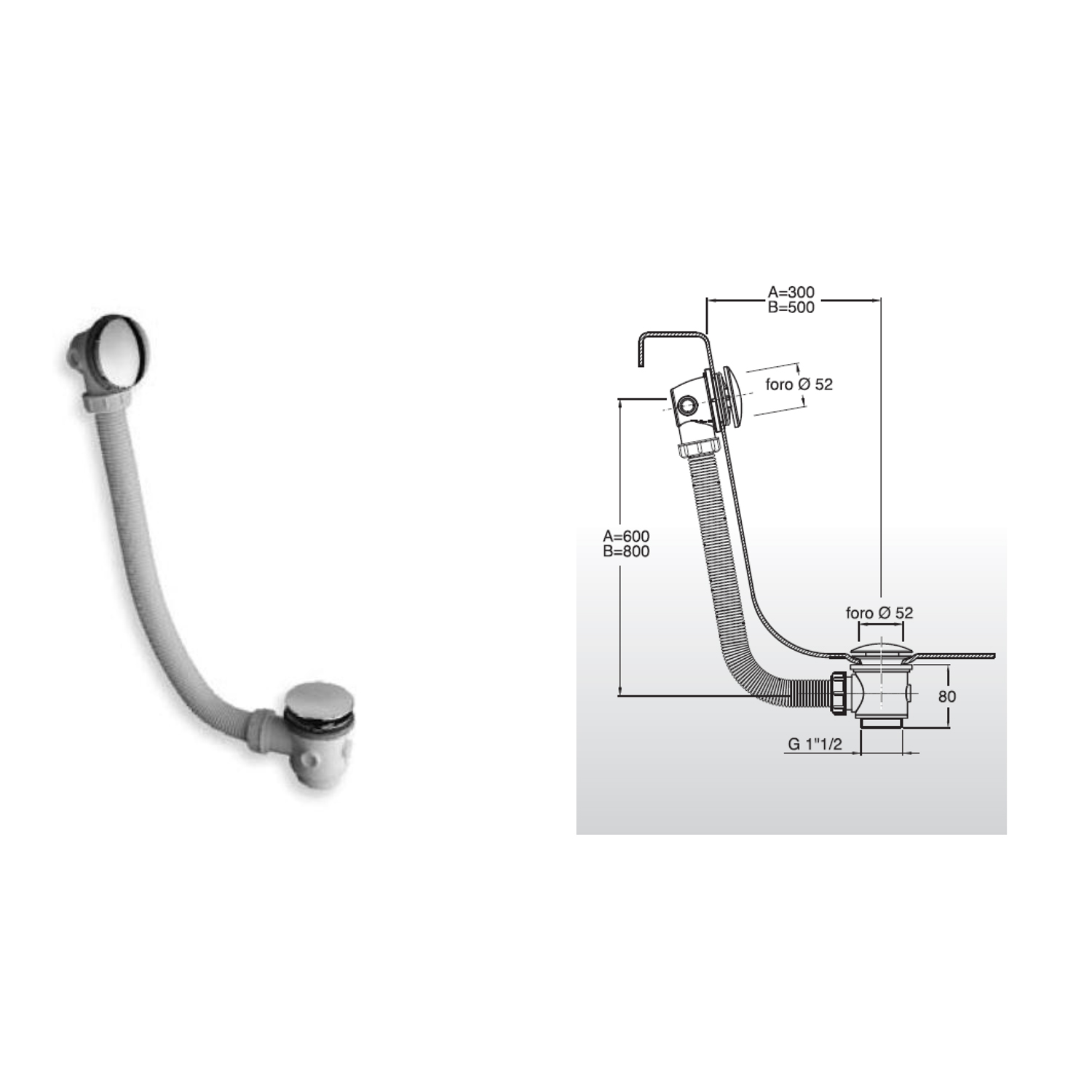BRUCKNER klik-klak Kád le- és túlfolyó, 900mm, átm:72mm, króm (164.390.1)
