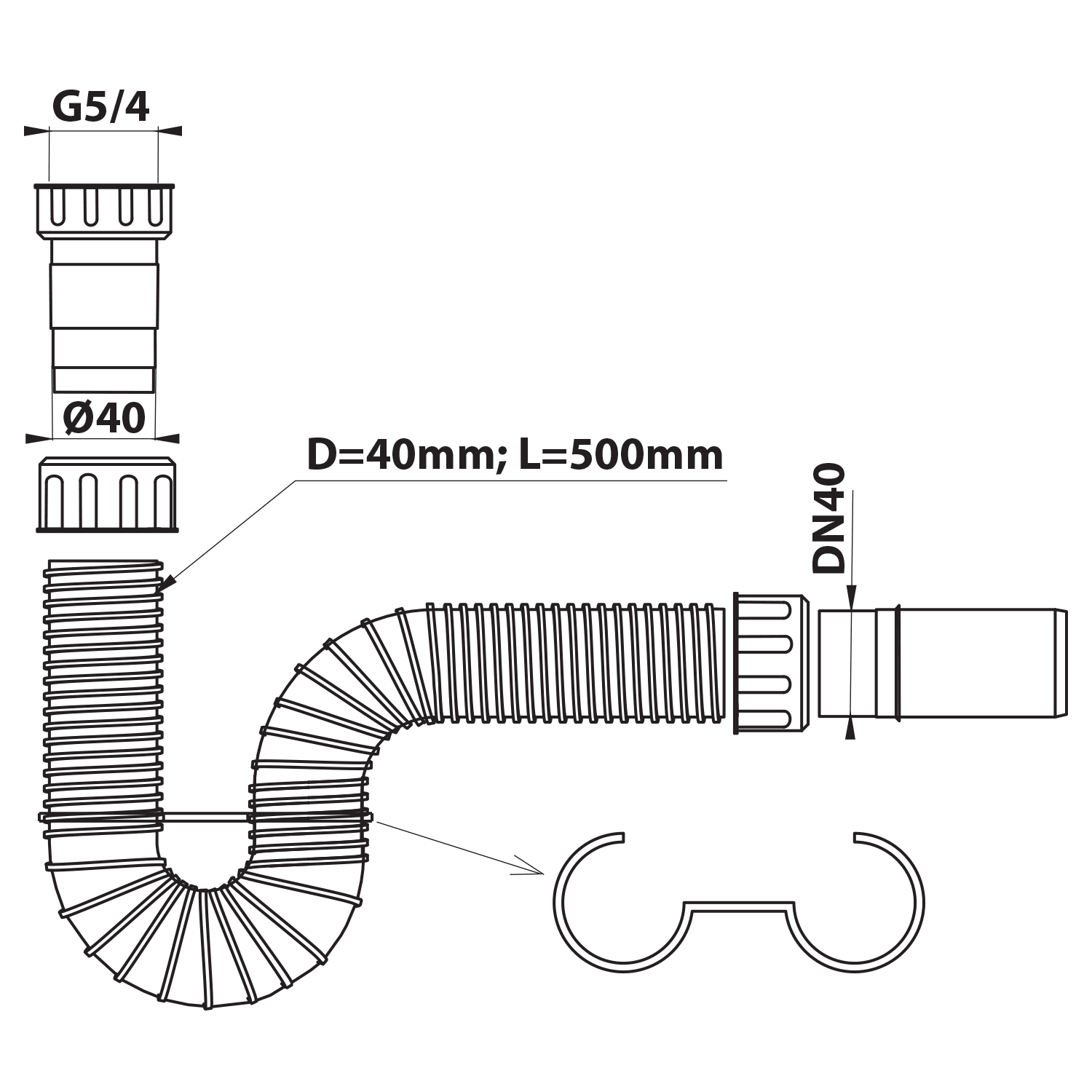 The flexible washbasin siphon is made of a solid plastic. It can be cut to the desired length. The smooth inner side prevents settlement of impurities.