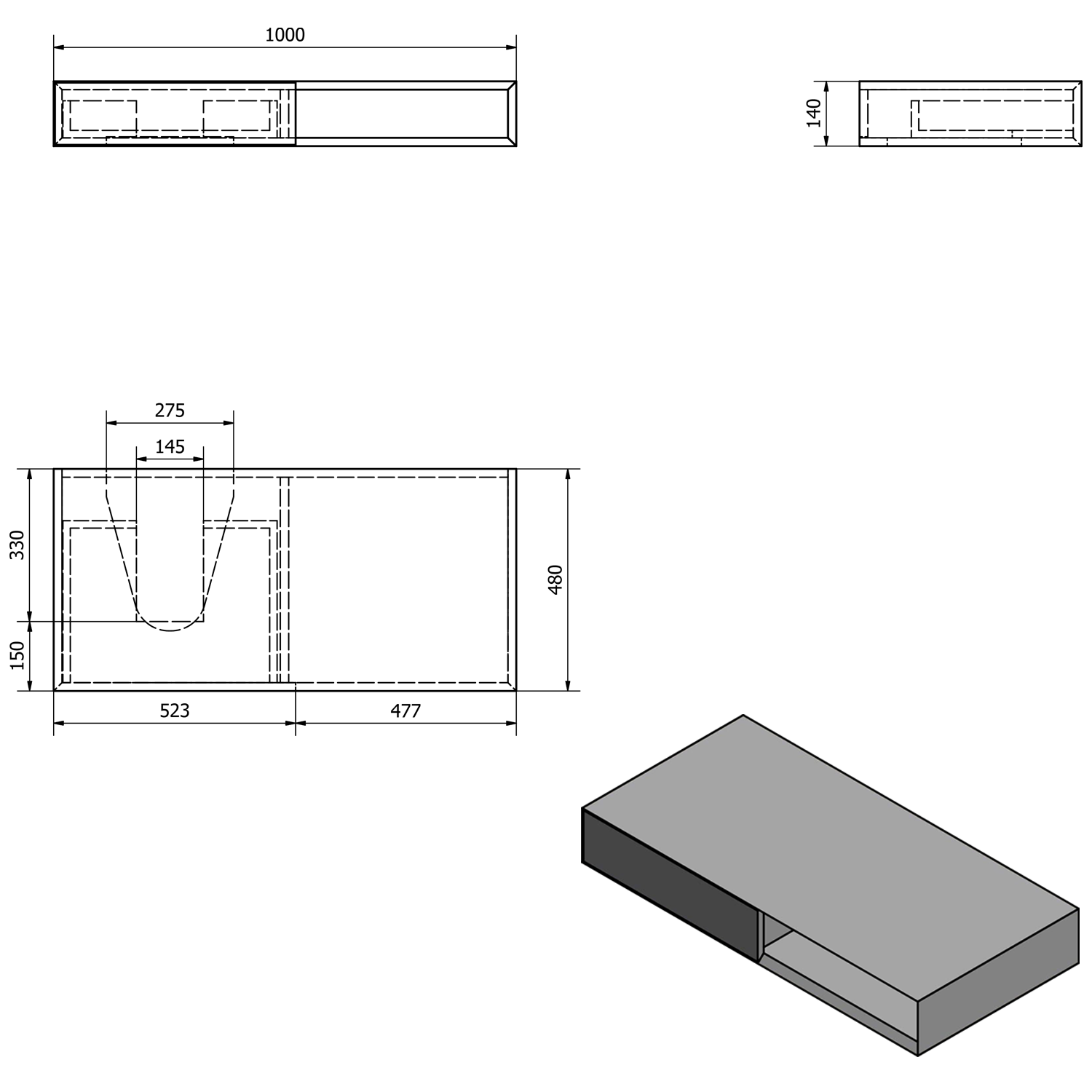 MR126 MORIAN mosdótartó pult polccal és fiókkal, jobbos, 100x14x48cm, fekete tölgy