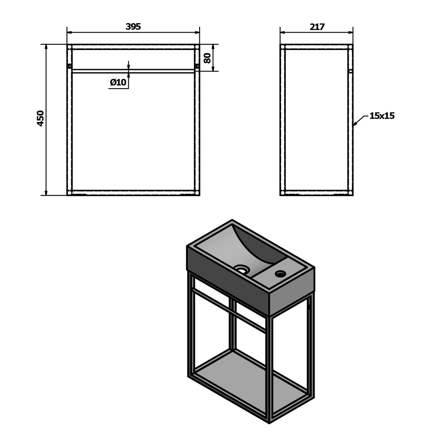 AR402 CREST mosdótartó konzol MDF polccal, 40x45x22cm, matt fekete