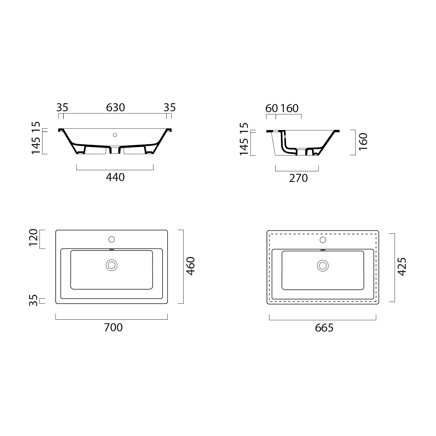 94549011 GSI KUBE X kerámiamosdó, csiszolt alsó szélekkel, 60x37cm, furat nélkül, ExtraGlaze