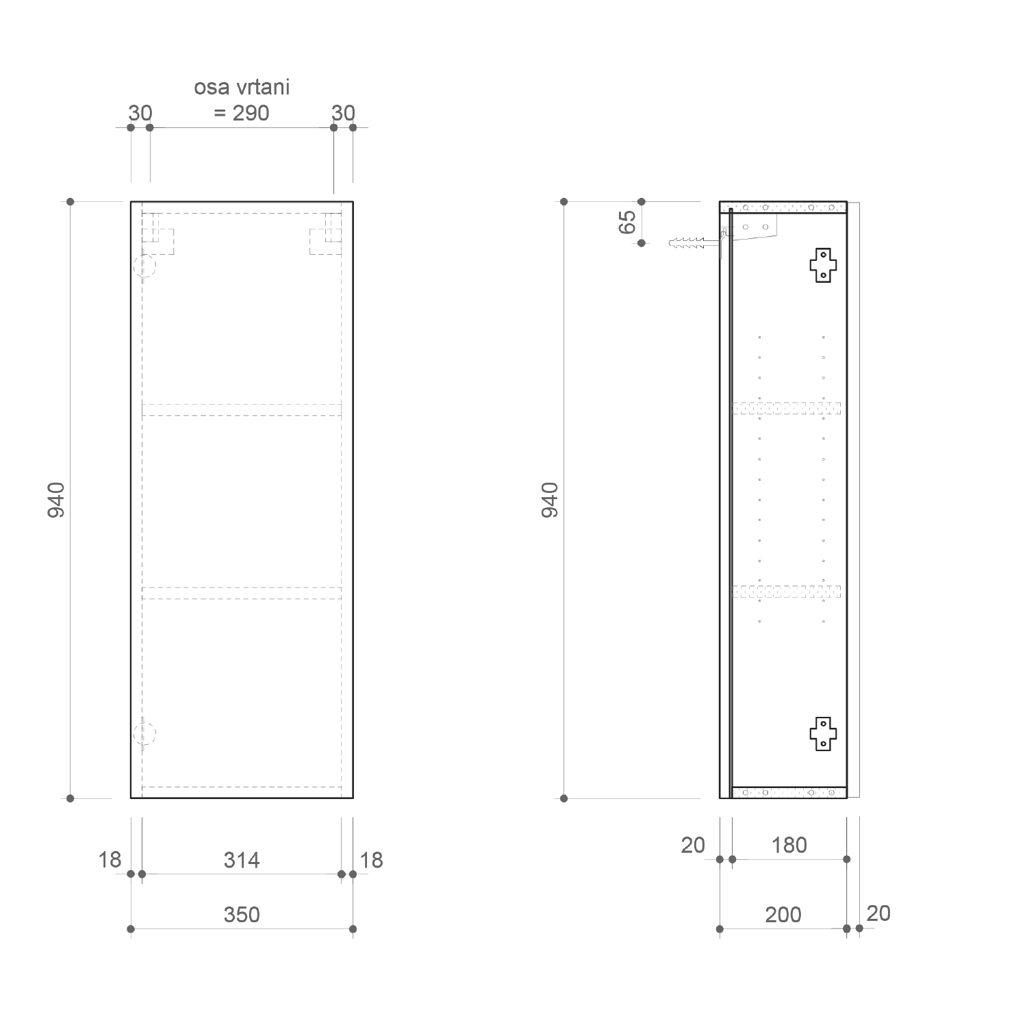 ESP111LP ESPACE felsőszekrény, 1 ajtóval, balos/jobbos, 35x94x22cm, ezüst tölgy