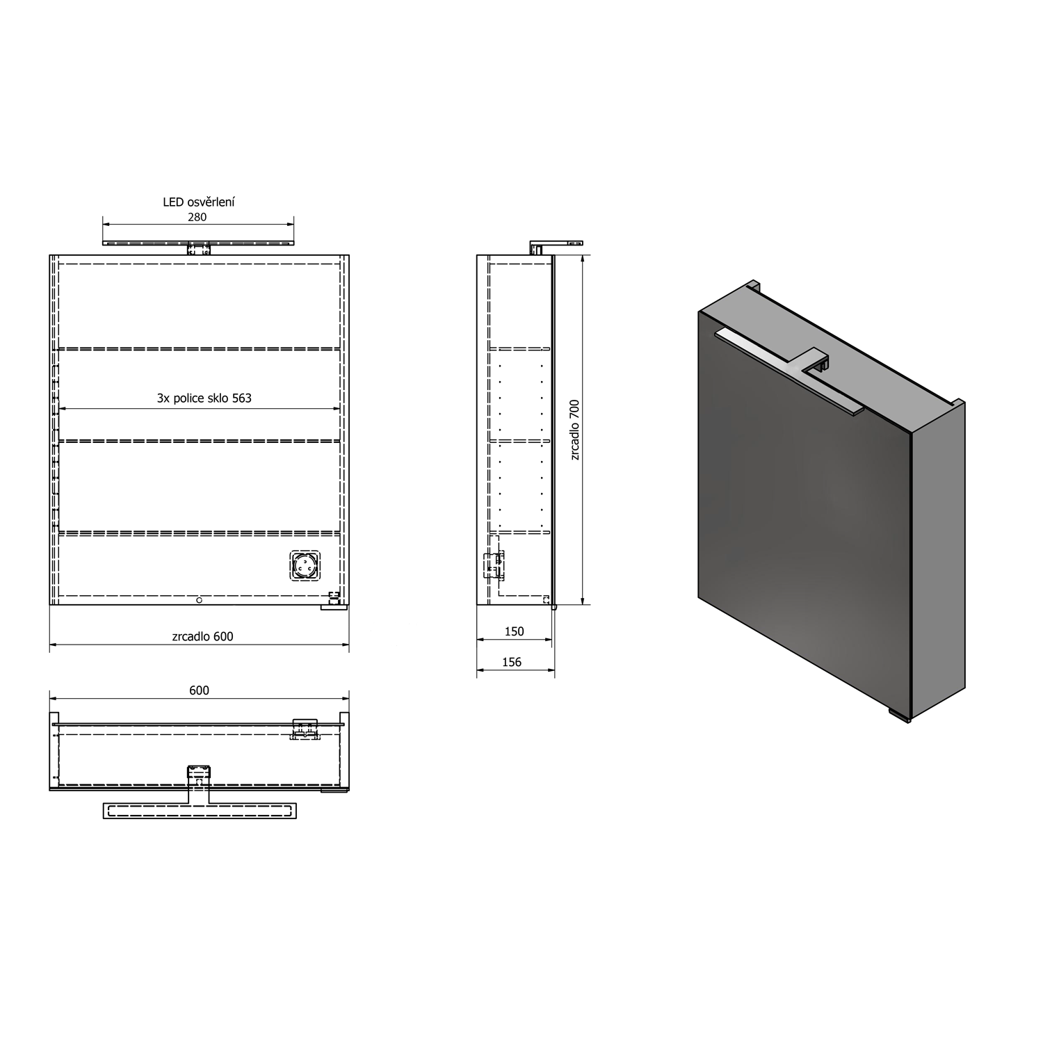 MC060-0030 MIRRÓ tükrösszekrény LED világítással, jobbos/balos, 60x70x16cm, fényes fehér