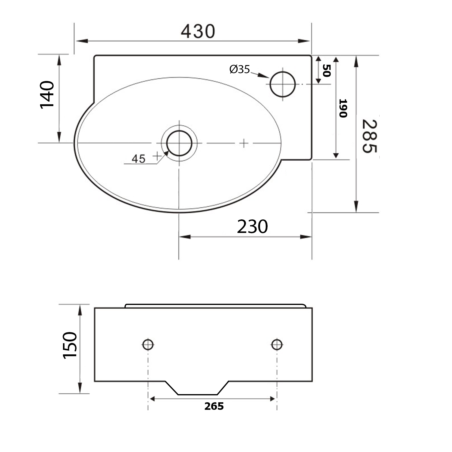10TP71045 AQUALINE SMALL kerámiamosdó, 45x35cm