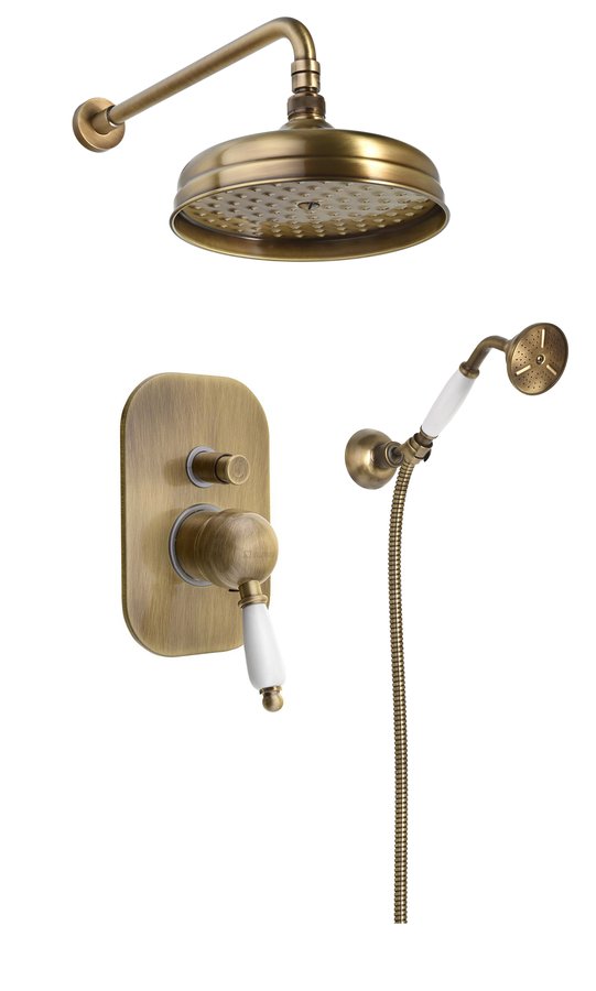 KI42B-01 KIRKÉ falba süllyesztett csaptelep, 2-irányú váltóval, zunayszettel, fejzuhannyal, bronz