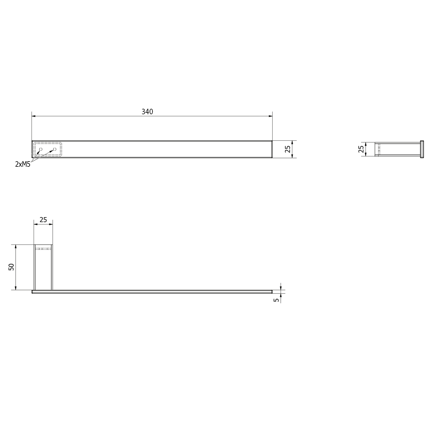 FA115 BELLA Törölközőtartó a szekrény oldalára, 250mm, króm