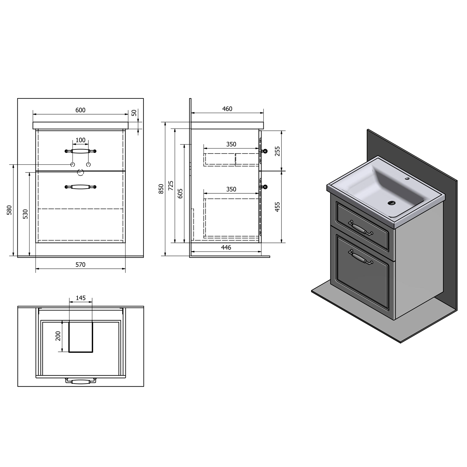 Furniture is equipped travels drawers with slow release and an automatic closing movement drawers. No more noisy closing.