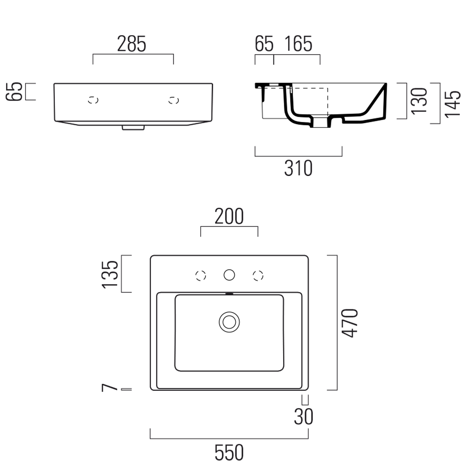 94579311 GSI KUBE X kerámiamosdó, 80x47cm, csiszolt alsó élekkel, 3 furattal, ExtraGlaze
