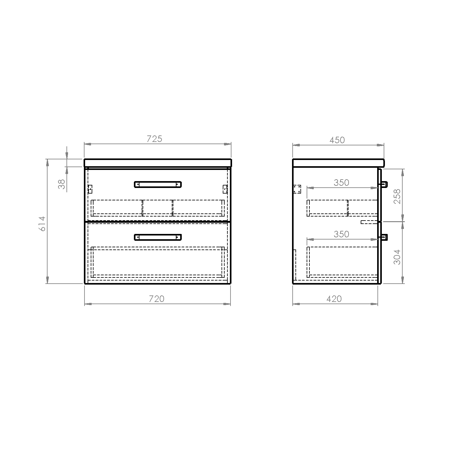 VG073 AQUALINE VEGA mosdótartó szekrény, 2 fikókos, 72x57,60x43,80cm, fehér (1db)