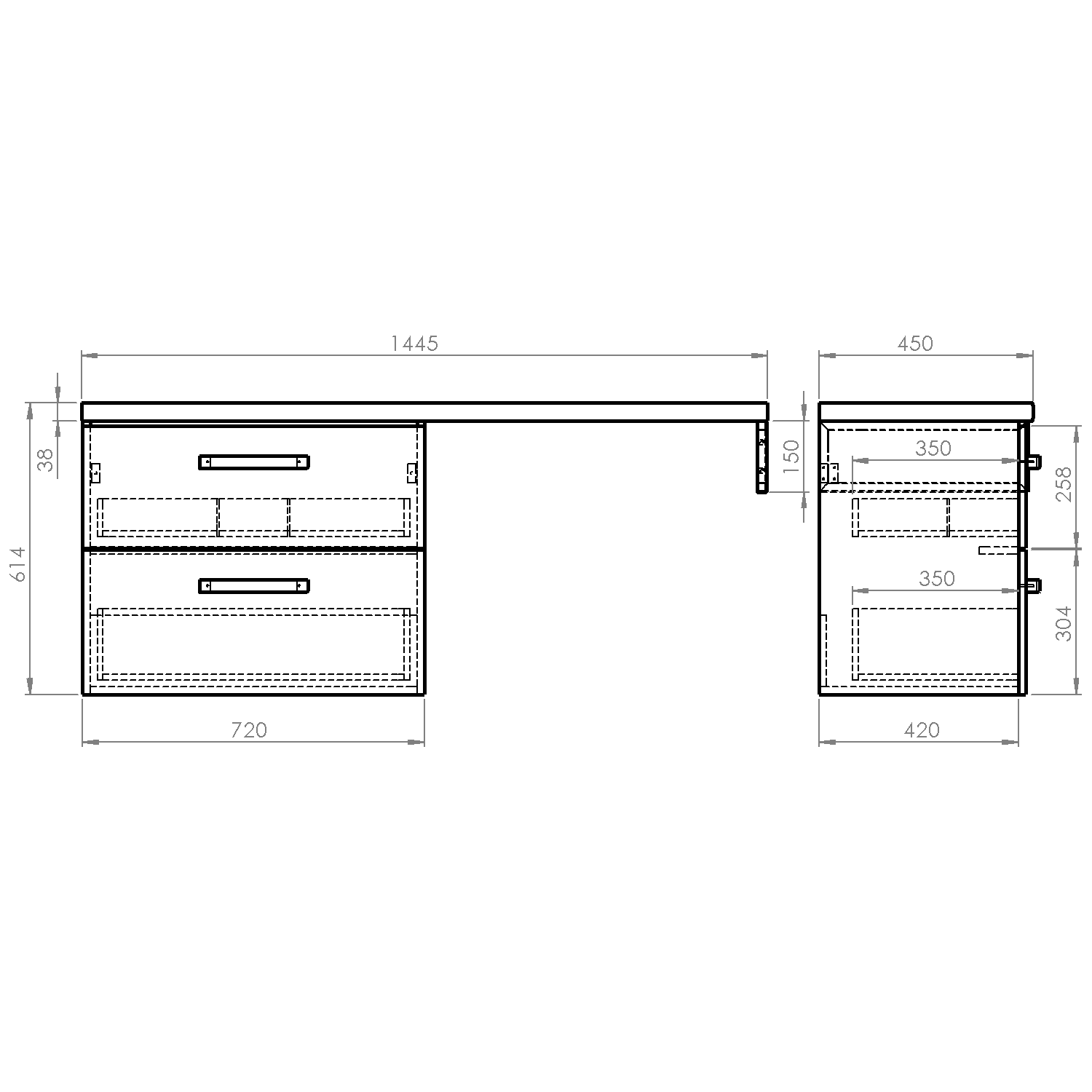 Furniture is equipped travels drawers with slow release and an automatic closing movement drawers. No more noisy closing.