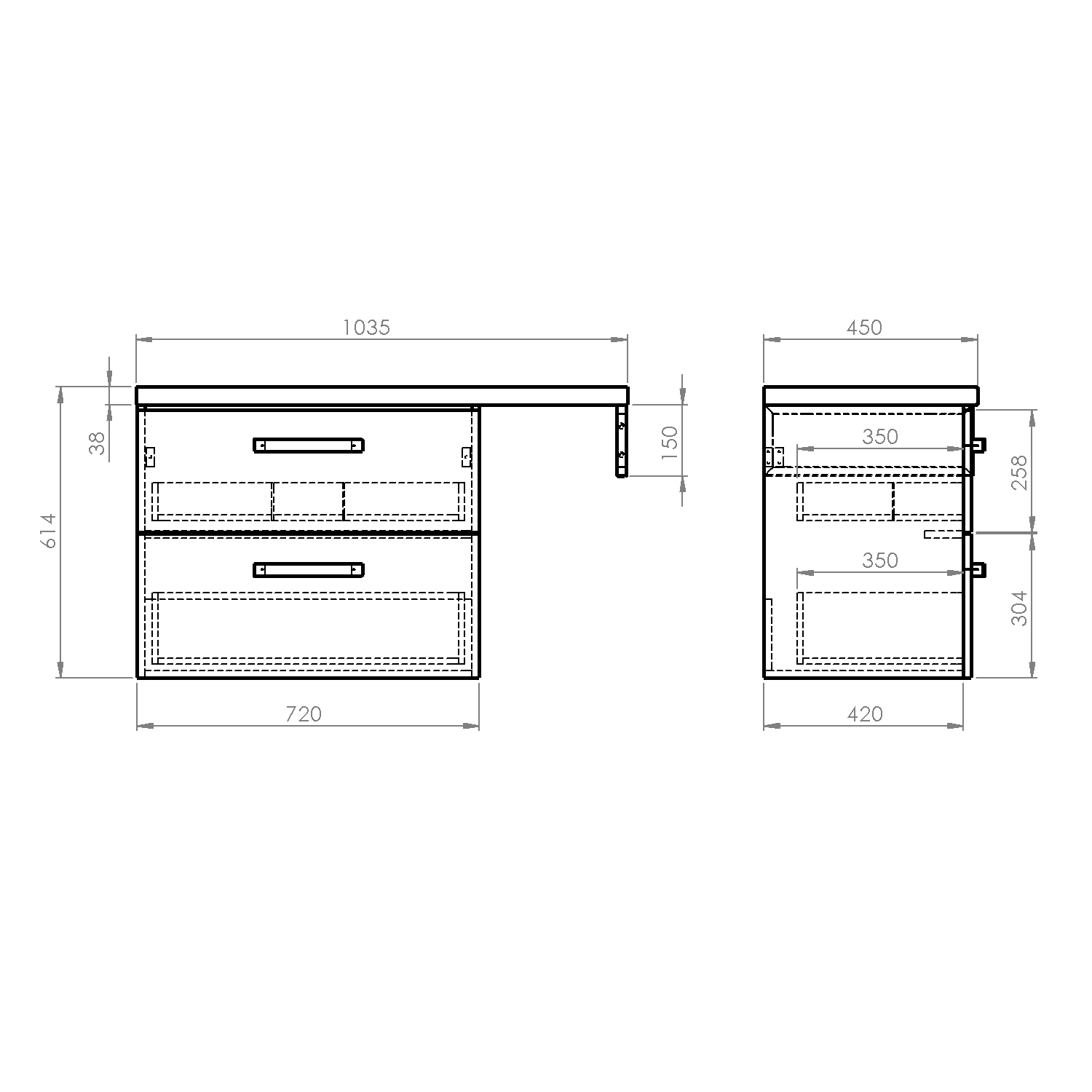 Furniture is equipped travels drawers with slow release and an automatic closing movement drawers. No more noisy closing.
