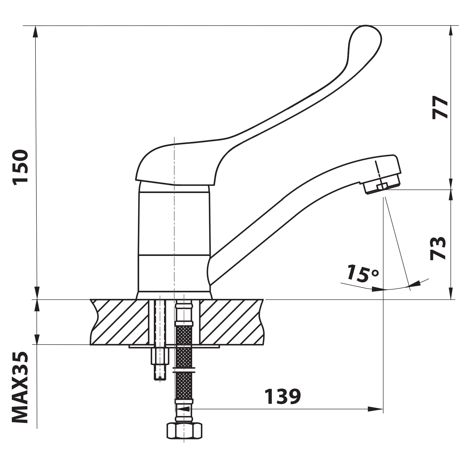 52234 AQUALINE mosogató-csaptelep, 177mm kifolyócsővel és orvosi karral