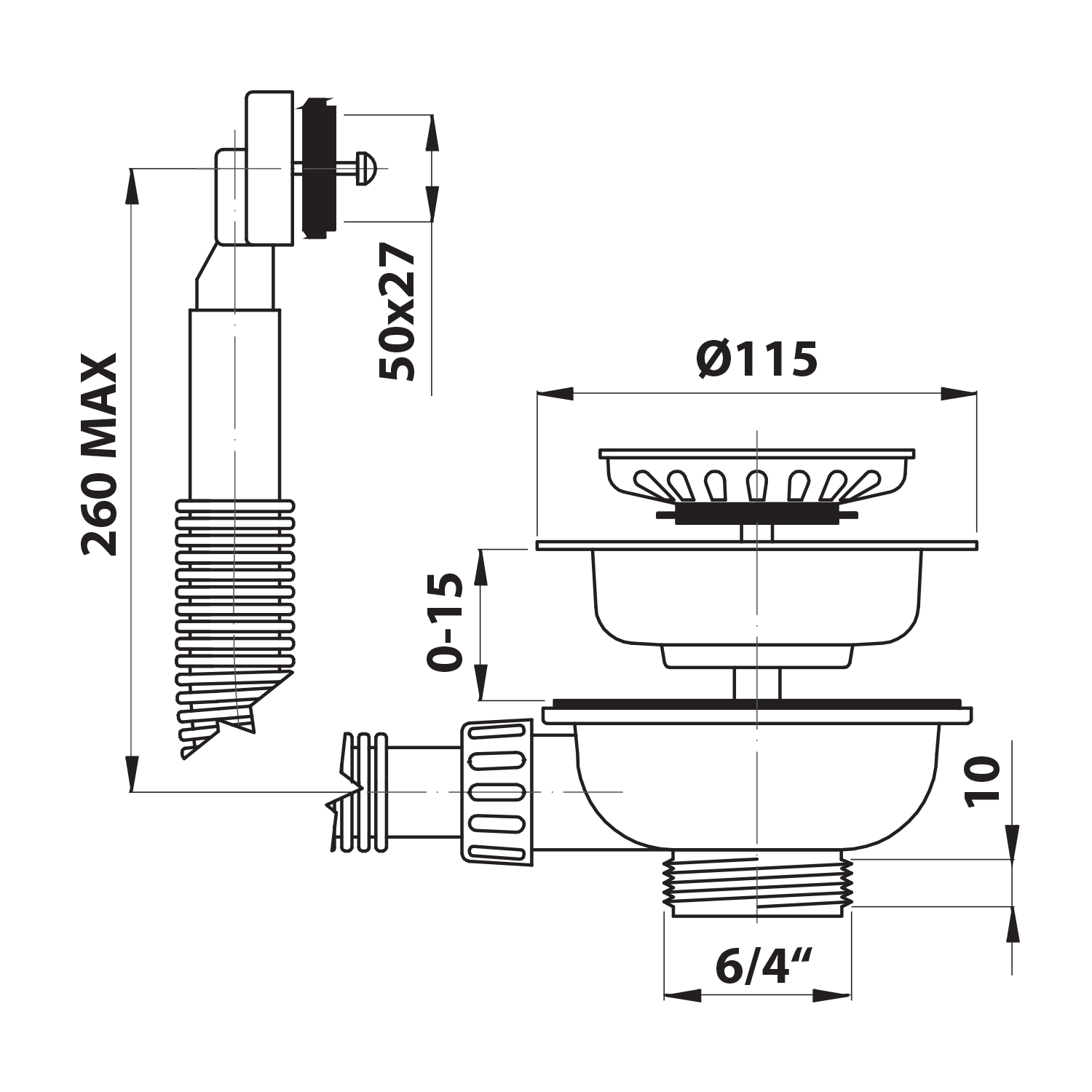 155.122.0 BRUCKNER mosogató bovdenes lefolyótálka, 1"1/2