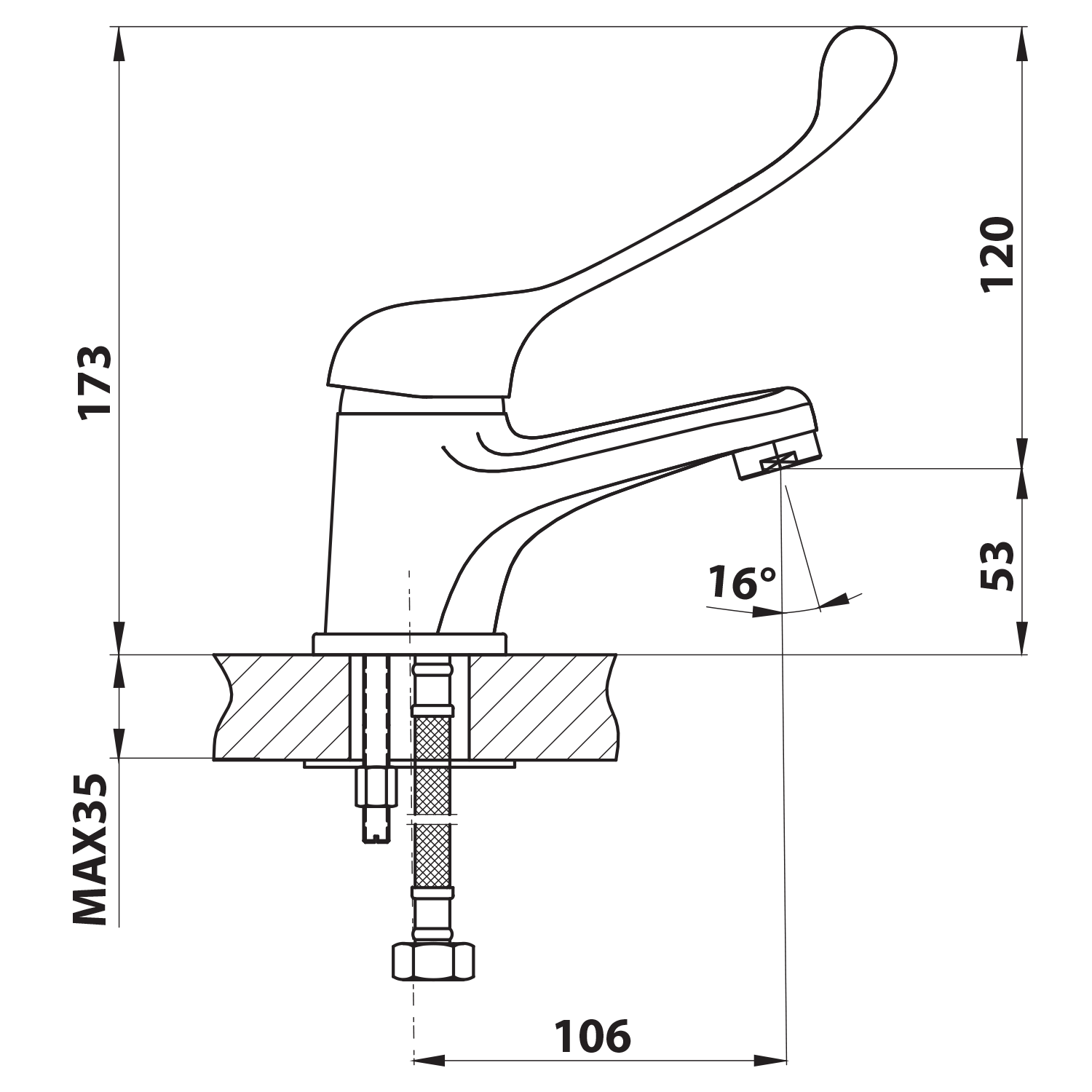 52234 AQUALINE mosogató-csaptelep, 177mm kifolyócsővel és orvosi karral