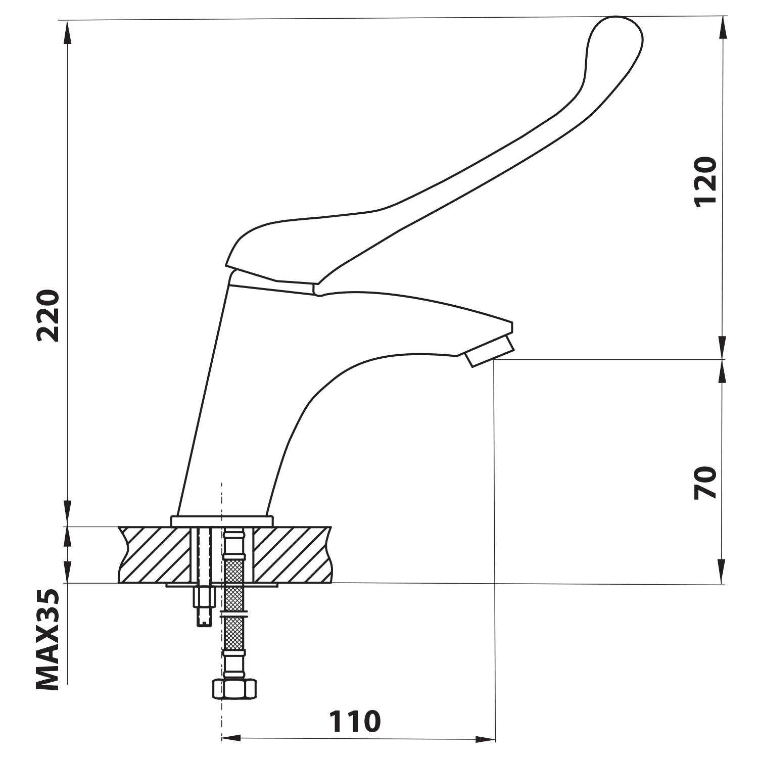 52044 AQUALINE mosogató-csaptelep, 220mm kifolyócsővel és orvosi karral