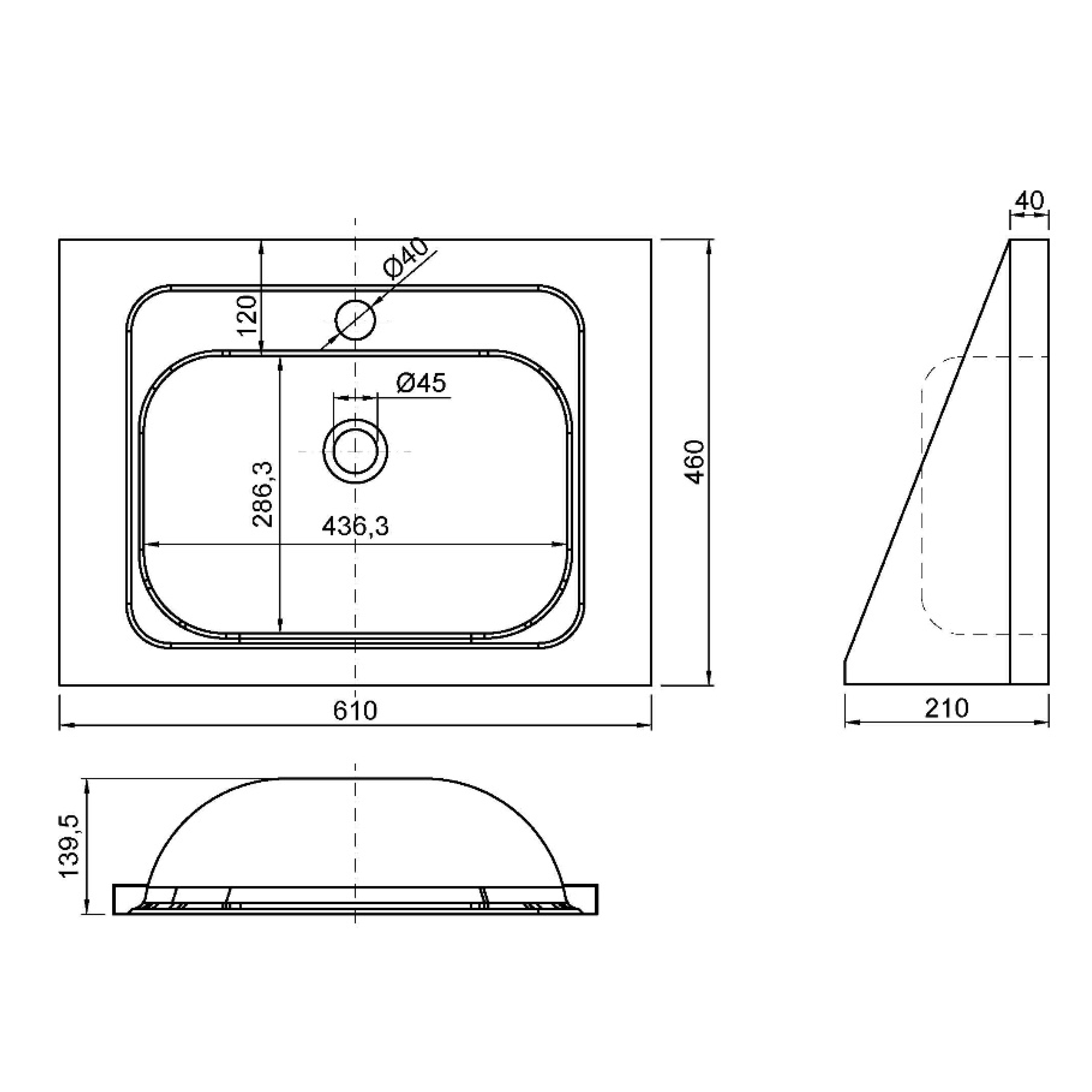 NOFER fali mosdó, 610x210x460mm, matt rozsdamentes acél (13033.S)