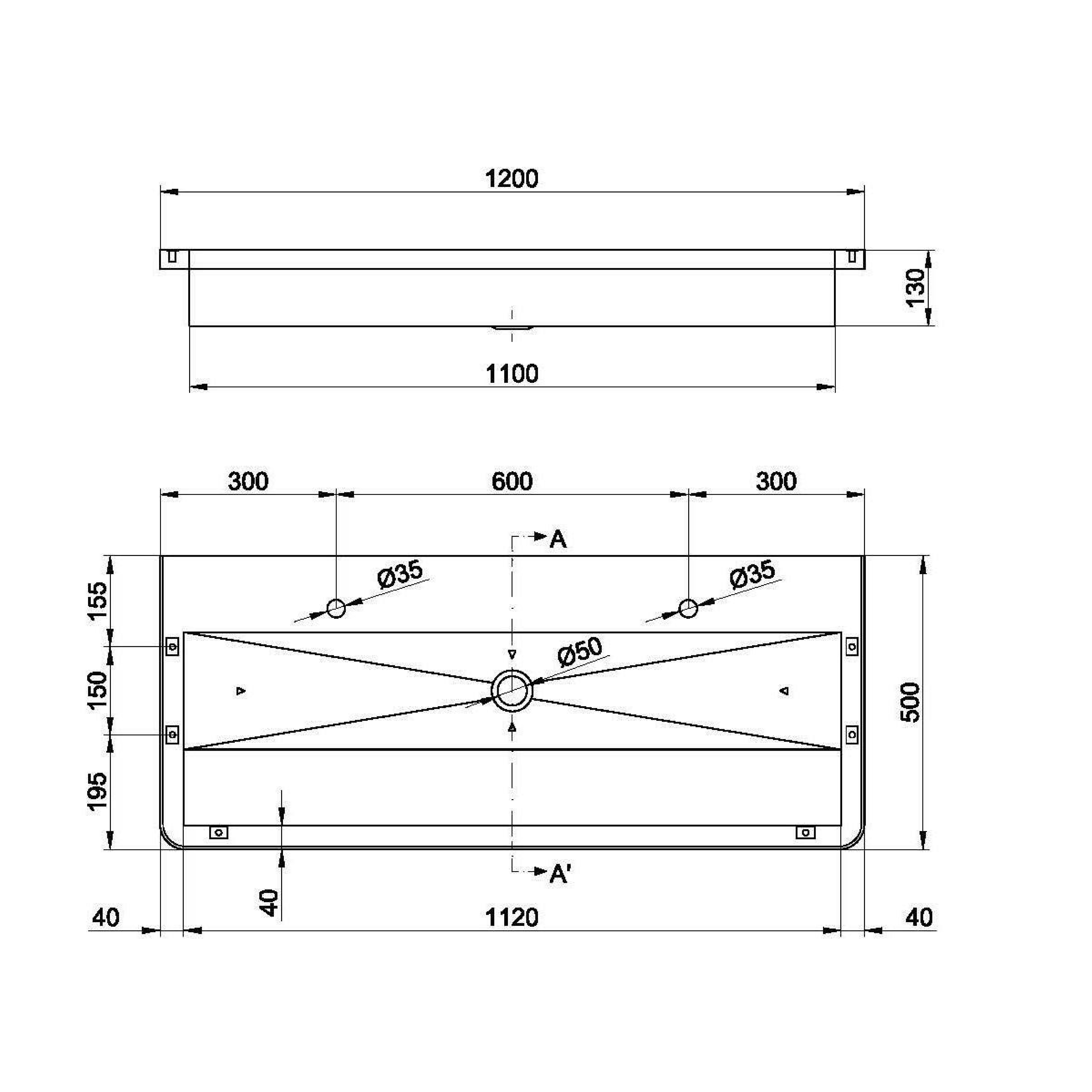 NOFER PUBLIC mosogató, 1200x130x500mm, matt rozsdamentes acél (13050.12.SP.S)